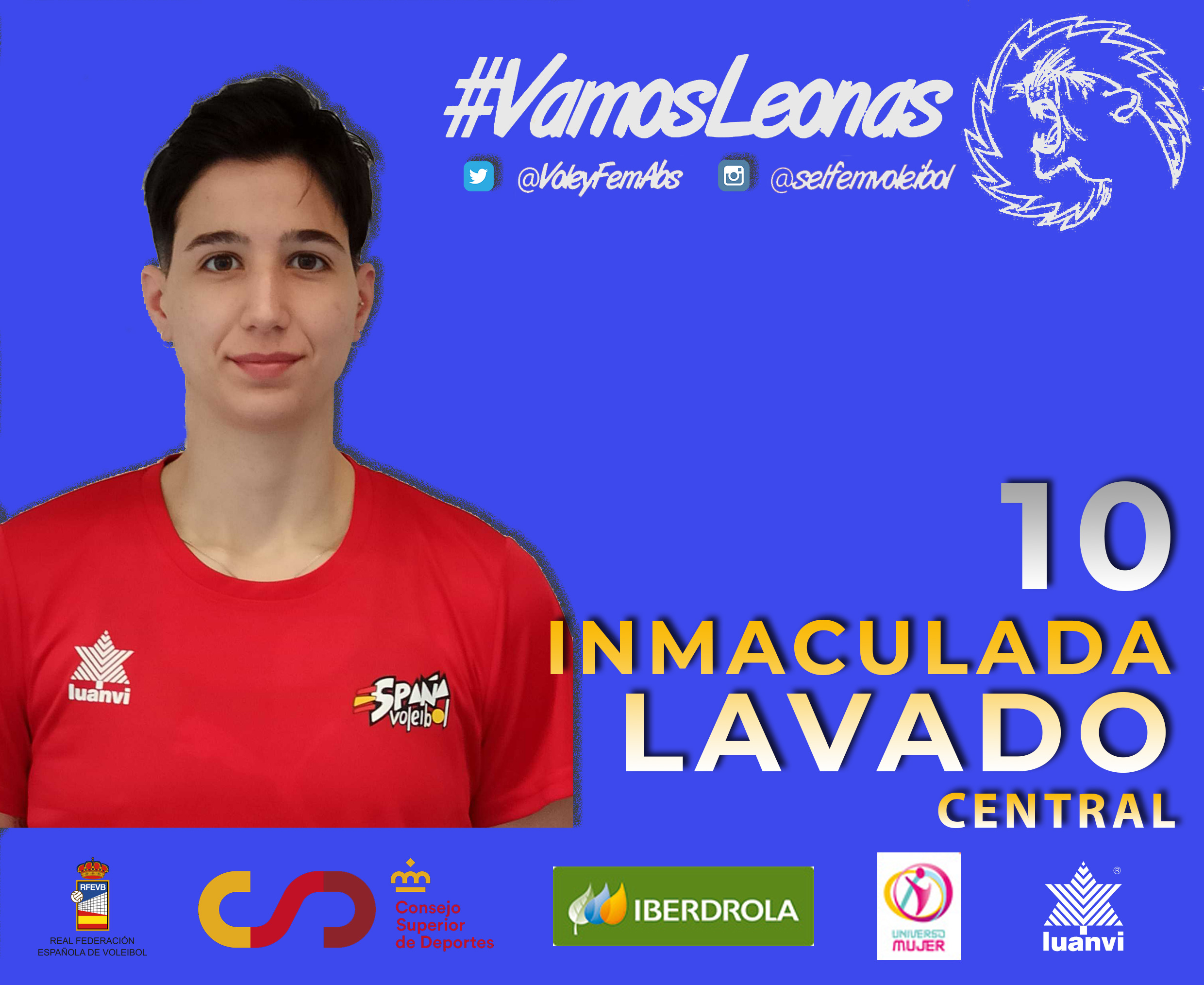 Inmaculada Lavado es otra de las debutantes en Las Leonas del Vóley en esta campaña. La oriunda de Ribera del Fresno ha visto cumplido uno de sus sueños con su debut este verano con la selección femenina. La central comenzó a jugar en el AD Voleibol Ribera de su localidad natal y aunque su última temporada la disputó con Arenal Emevé, entre sus recuerdos con el vóley tiene un lugar especial Extremadura Arroyo.