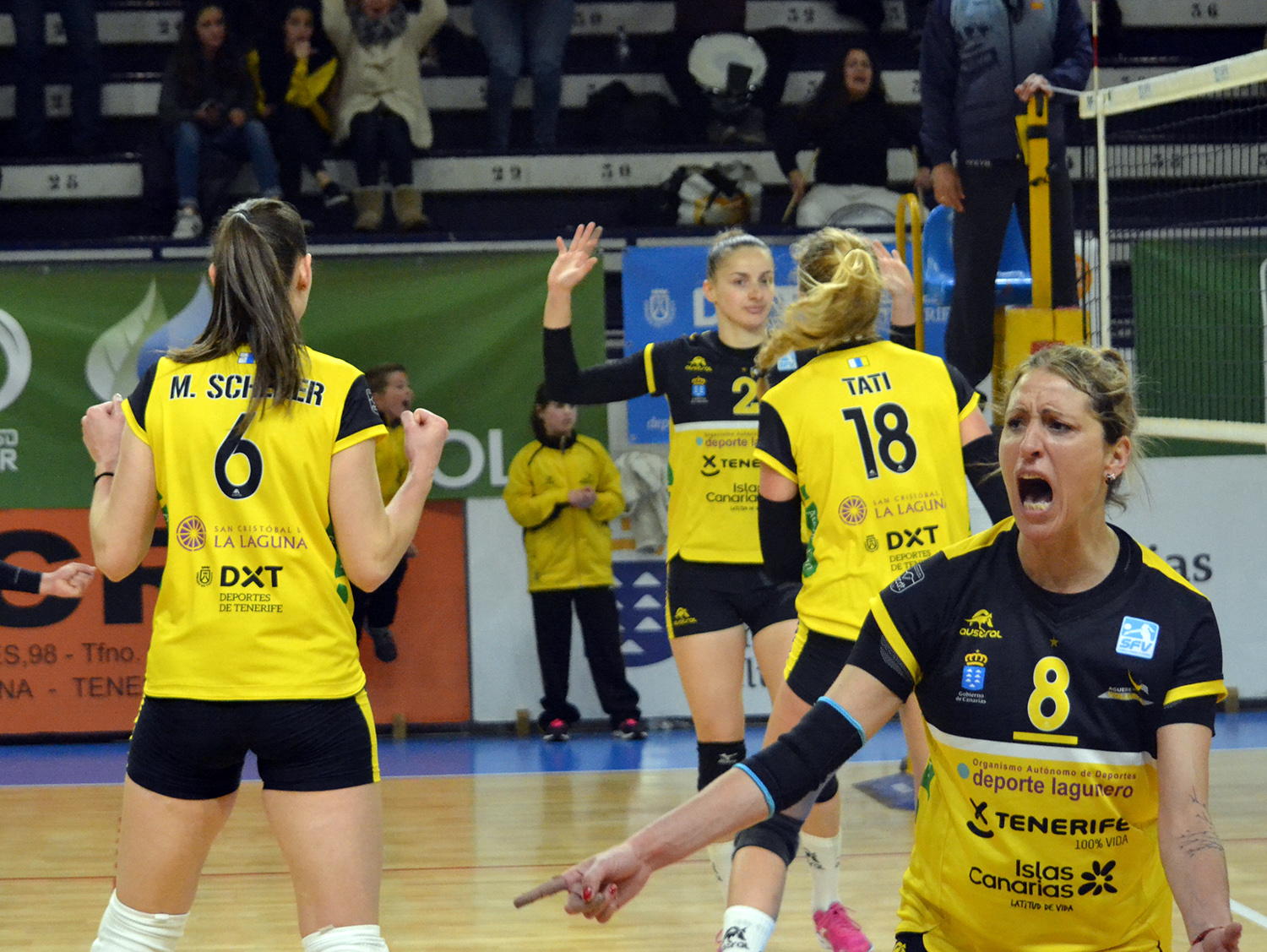 El Aguere Tenerife comenzó a ofrecer su mejor versión en el segundo set, imponiendo un ritmo que San Cugat no pudo igualar (25-17). La dinámica positiva se mantuvo en el cuarto set, gracias al buen trabajo de Diana Sánchez y Ana Frare en ataque, 25 y 21 puntos, respectivamente. Las laguneras se impusieron con claridad (25-16). Sin embargo, el CV San Cugat, lejos de dar el encuentro por perdido, se encomendó a Carla Moreira, con sus 22 puntos, para llevarse con claridad el cuarto set y forzar el quinto (21-25).