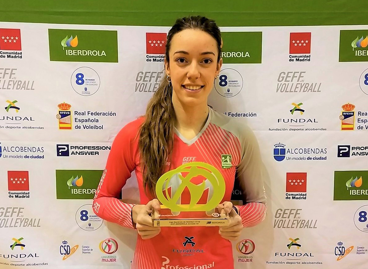 La jugadora de Feel Volley Alcobendas Alicia de Blas fue designada MVP Iberdrola de esta semana, después de protagonizar una completísima actuación en la victoria de su equipo ante Avarca de Menorca, uno de los partidos más destacados del fin de semana en la Liga Iberdrola.