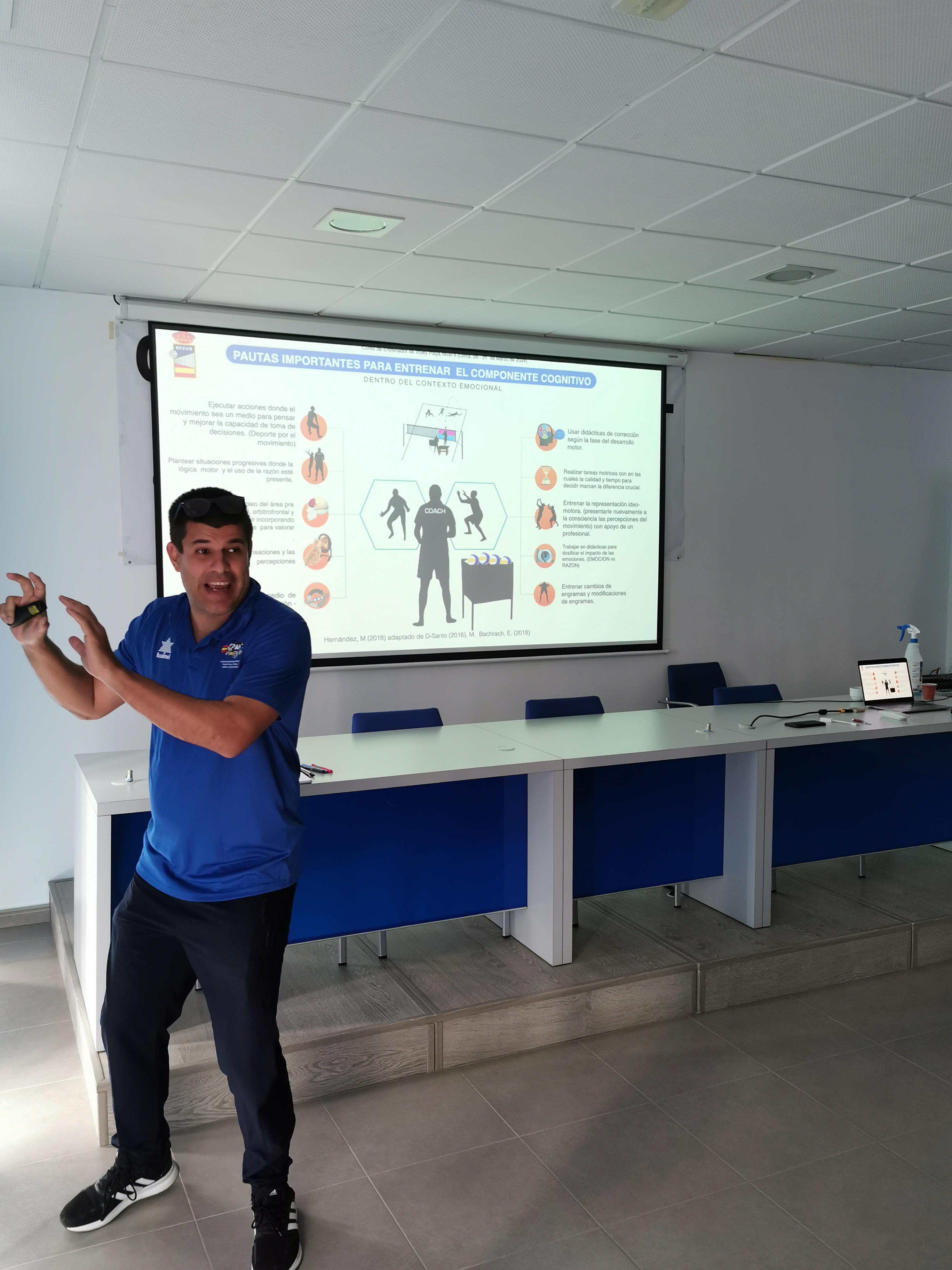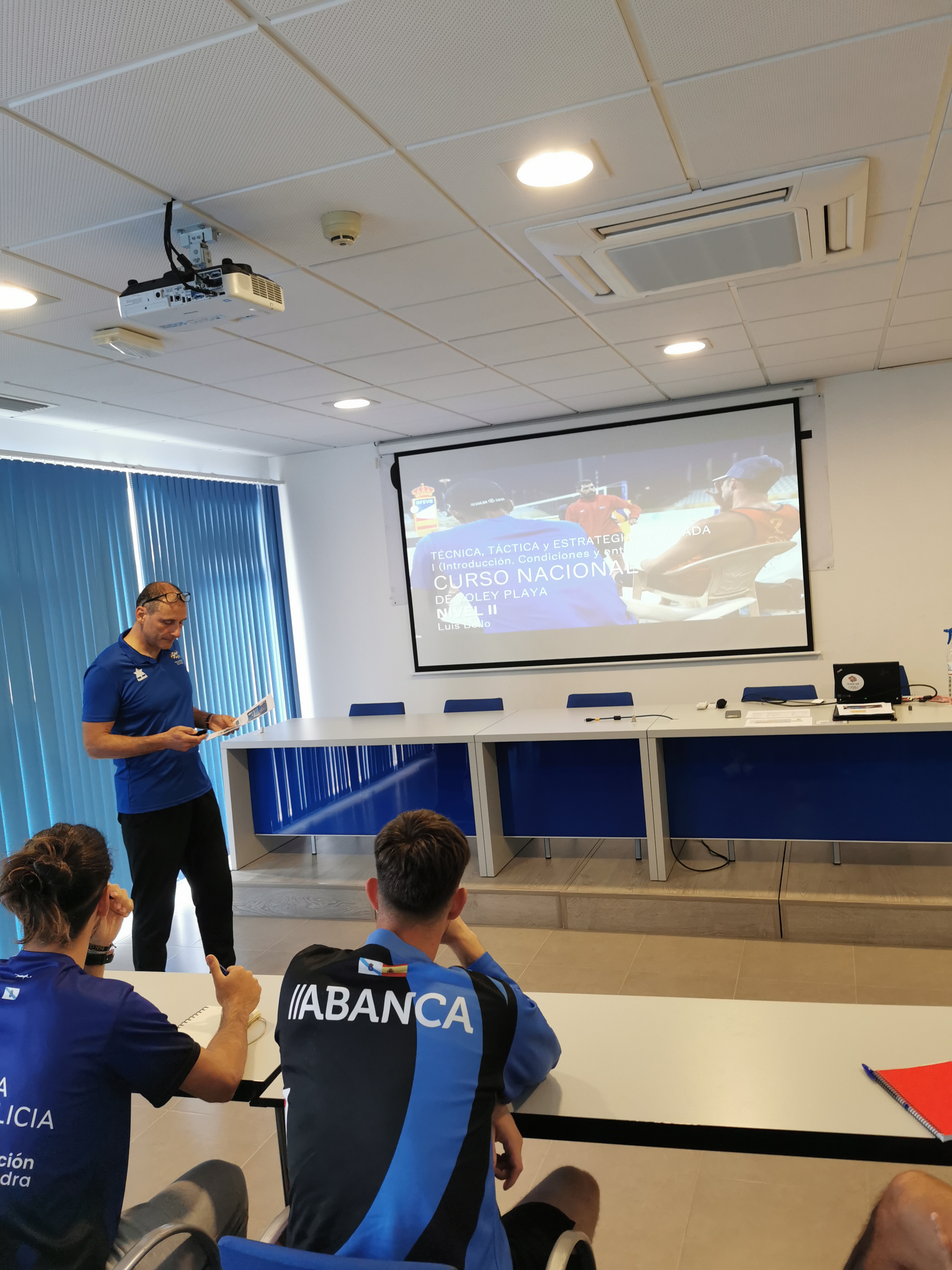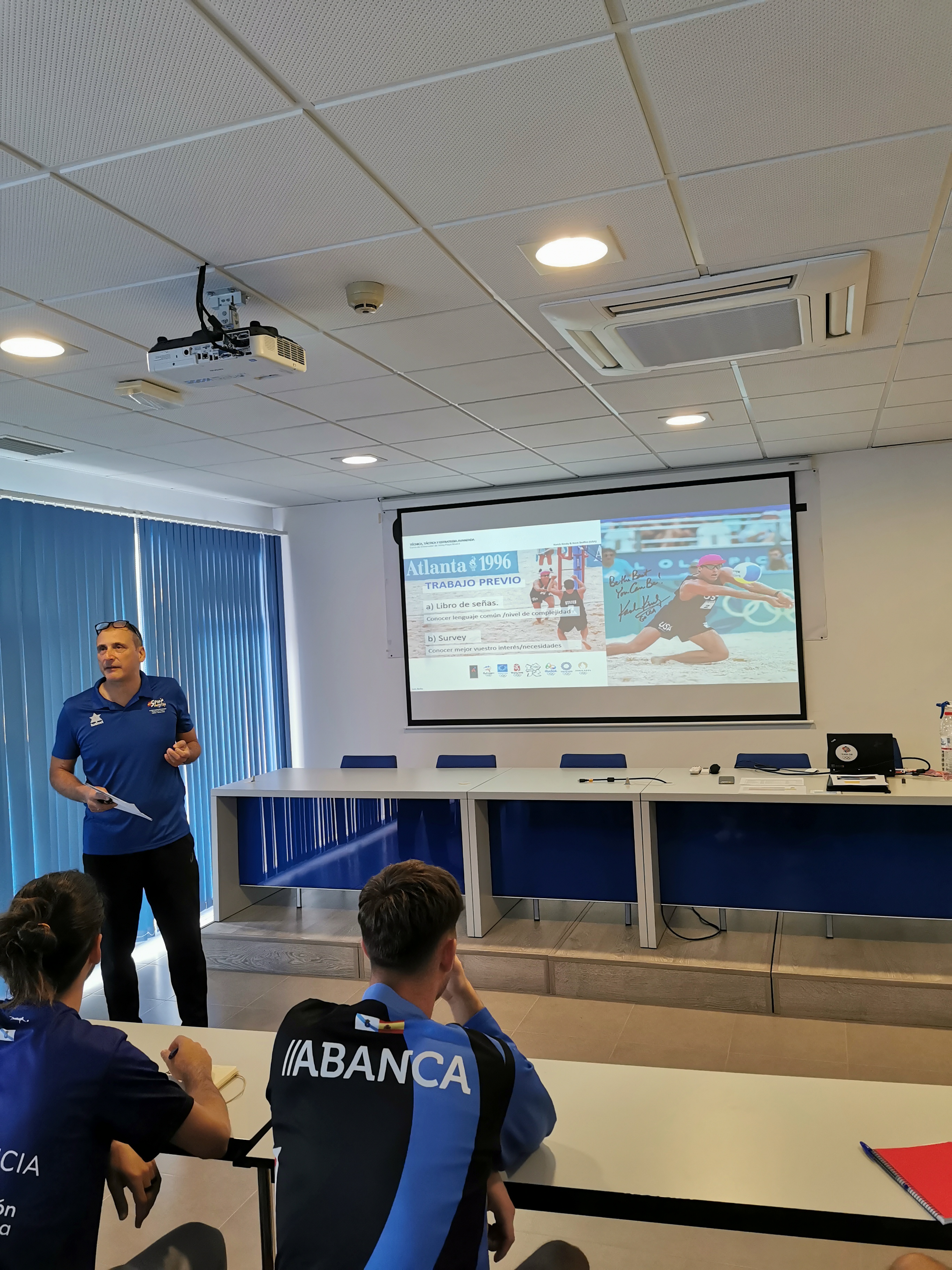 Además de las clases teóricas, los alumnos inscritos al Curso Nacional de Entrenador de Vóley Playa Nivel II han tenido la oportunidad de domostrar su habilidades sobre la arena en una última sesión práctica de Preparación Física, asignatura impartida por Antonio García de Alcaraz. Este viernes, los futuros entrenadores de vóley playa en cualquier categoría a nivel nacional han vuelto a tener clase de Psicología con Mauro Hernández y sus primeras lecciones de Técnica, Táctica y Estrategia con Luis Bello.