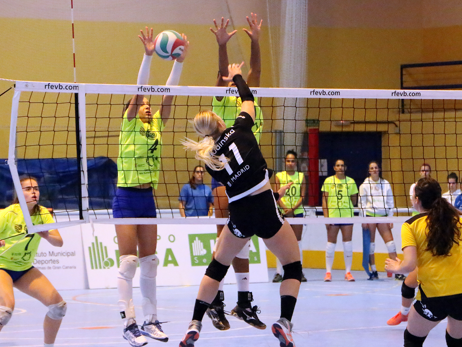 En el segundo set, las jugadoras madrileñas se adelantaban en el marcador pero las amarillas conseguían frenarlas en todo momento para terminar cerrando el set fácilmente por un 25-15. Destacar nuevamente la actuación de Sara Folgueira por la punta que sumó 21 puntos en total durante todo el partido.