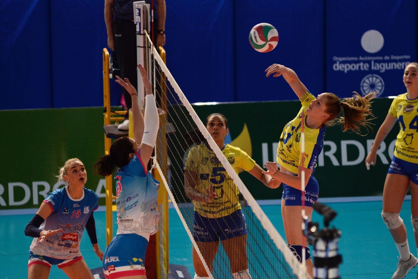A entrenador nuevo victoria segura dice el dicho, y CV CCO 7 Palmas Gran Canaria lo hizo bueno en el derby canario ante Fachadas Dimurol Libby´s y sumó un valioso triunfo que le asegura los playoffs. Las jugadoras de Sergio Miguel Camarero reaccionaron al primer set vencido por las tinerfeñas con un gran orden en su juego. La aportación de Saray Manzano lanzaría a las grancanarias hacia la igualada y hacia el triunfo en los sets siguientes. Los bloqueos de Marisa Fernández no frenaban el juego ofensivo del conjunto de Las Palmas con la distribución de Jacqueline Rodrigues llevando a cuatro compañeras por encima de la decena de puntos y a un triunfo que las sitúa de nuevo en las eliminatorias por el título.