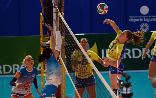 Espectacular fue la reedición de la semifinal de la Copa de la Reina. Cajasol Juvasa vendió carísima la derrota ante Minis de Arluy VB Logroño. El primer set fue favorable a las recién coronadas campeonas de la Copa, pero las sevillanas guiadas por su público y afición consiguieron dar la vuelta al marcador y soñar con un triunfo que la reacción de las jugadoras de Carlos Arratia impidió. Un aumento de intensidad y acierto de las riojanas, lideradas por Helía González, Daniela Da Silva y Fernanda Gritzbach, llevaron el partido al tiebreak, para hacerse con la victoria en un desempate controlado desde el primer momento.