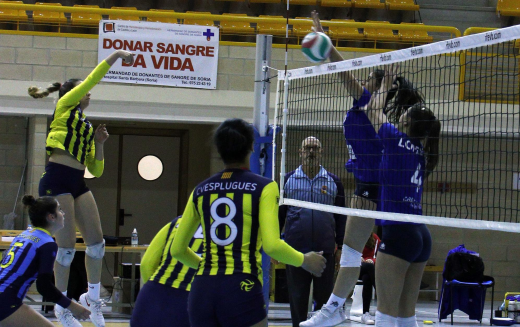 Un contraataque y un error de ataque de soria hacia que las de Esplugues se distanciaran por 2 puntos. El resto del set se desarrollaría con igualdad hasta el 23/23 momento en el que el