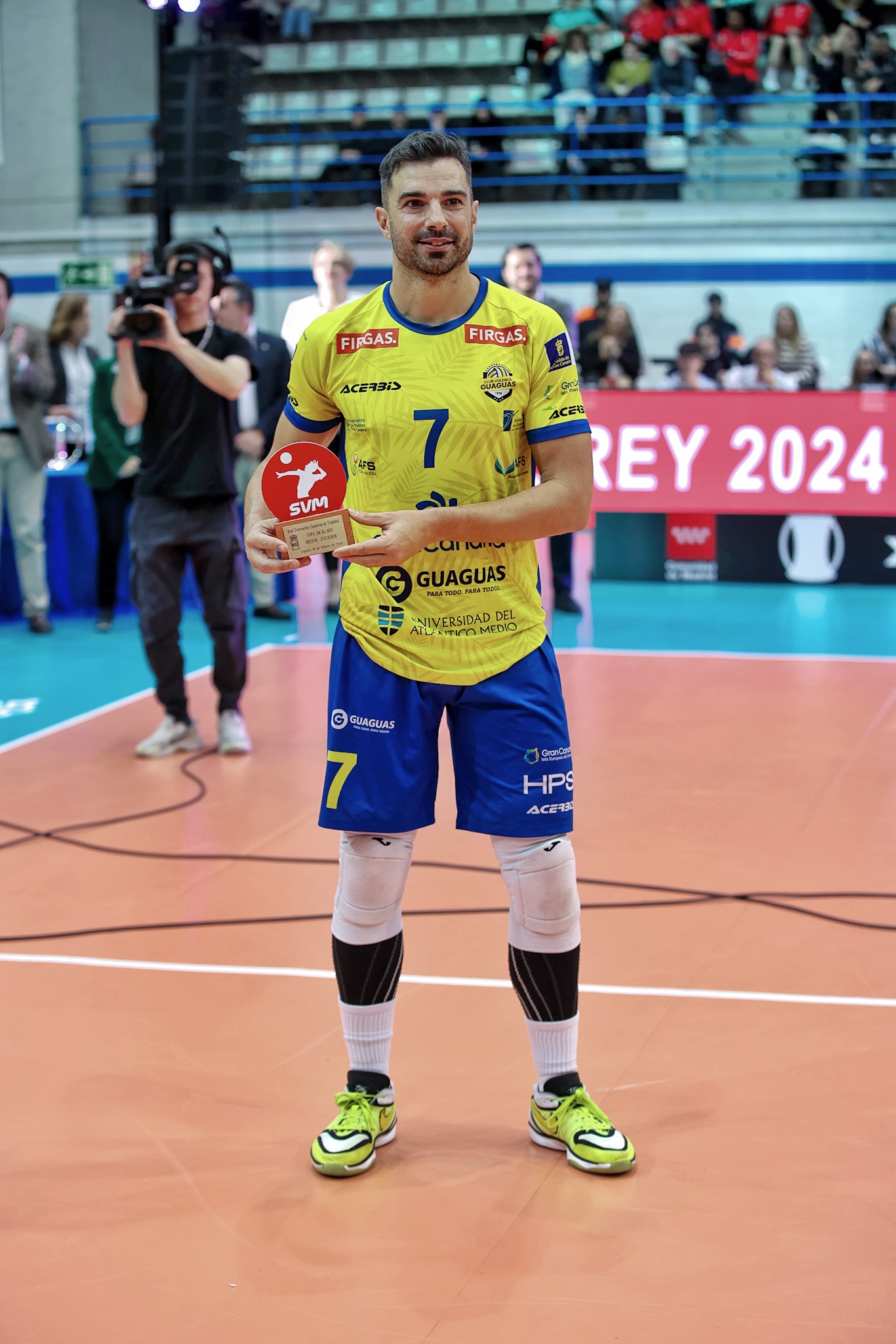 : Final de la XLIX Copa de SM El Rey celebrada en el Pabellón Europa de Leganés ante 4000 espectadores (Lleno). El Presidente del Comité Olímpico Español Alejandro Blanco hizo entrega a Miguel Ángel de Amo el trofeo acreditativo como MVP de la XLIX Copa de SM el Rey. Mariano de Paco, Consejero de Cultura, Turismo y Deporte de la Comunidad de Madrid y Aitor Canibe, Subdirector General de Alta Competición del CSD, entregaron a Borja Ruiz, capitán de Unicaja Costa de Almería, el trofeo de subcampeón de la XLIX Copa de SM el Rey. El Excelentísimo Señor Alcalde de Leganés Miguel Ángel Recuenco y Agustín Martín Santos, presidente de la RFEVB entregaron a Jorge Almansa, capitán de CV Guaguas el trofeo de campeón de la XLIX Copa de SM El Rey.