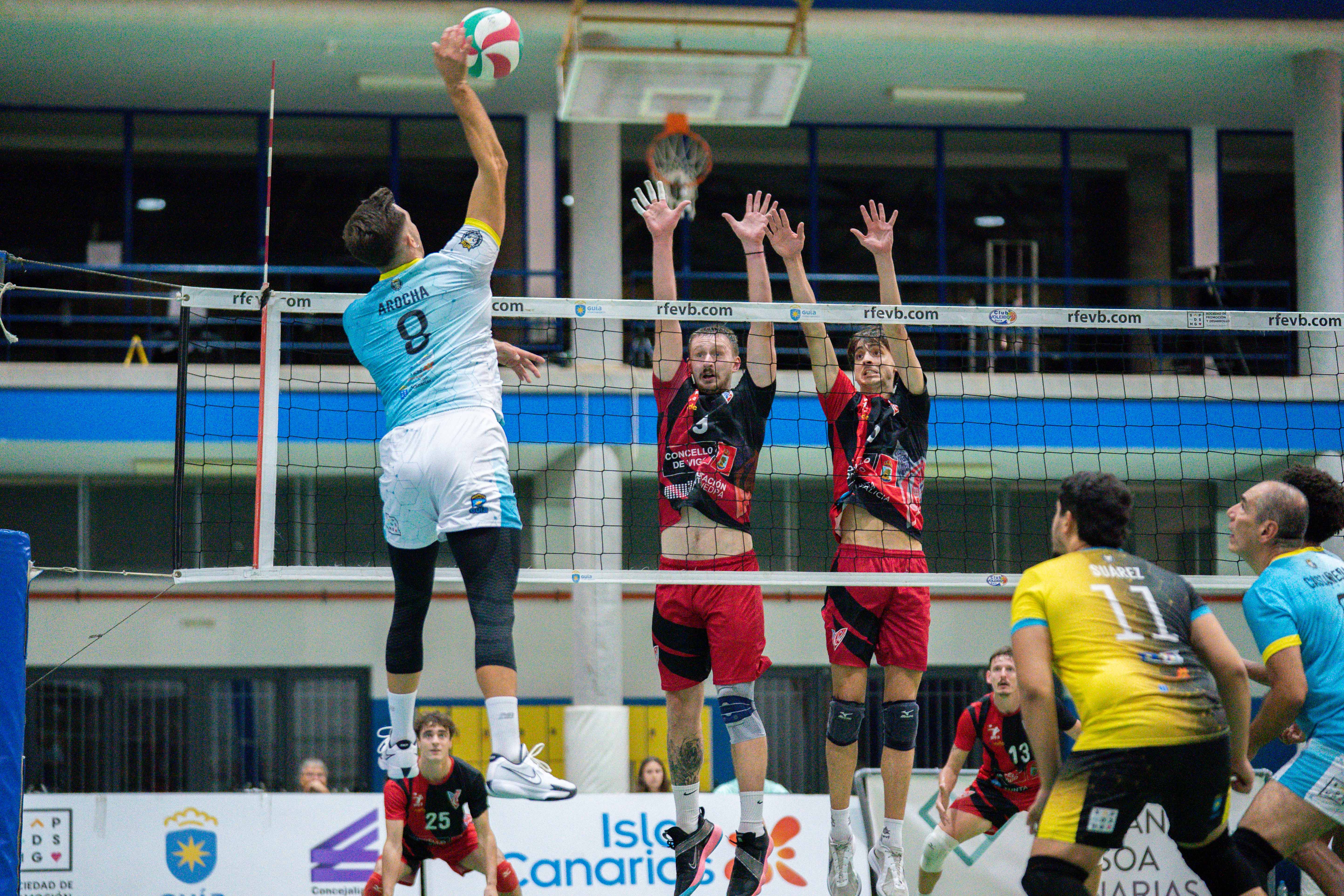 El encuentro comenzó con un primer set muy disputado en el que el CV Vigo tomó ventaja inicial (4-10). El equipo local reaccionó y llegó a situarse 11-15 a mitad del set. Tras un tiempo muerto solicitado por el conjunto visitante (16-19), el tramo final mantuvo la igualdad, pero el CV Vigo cerró la manga por 22-25.