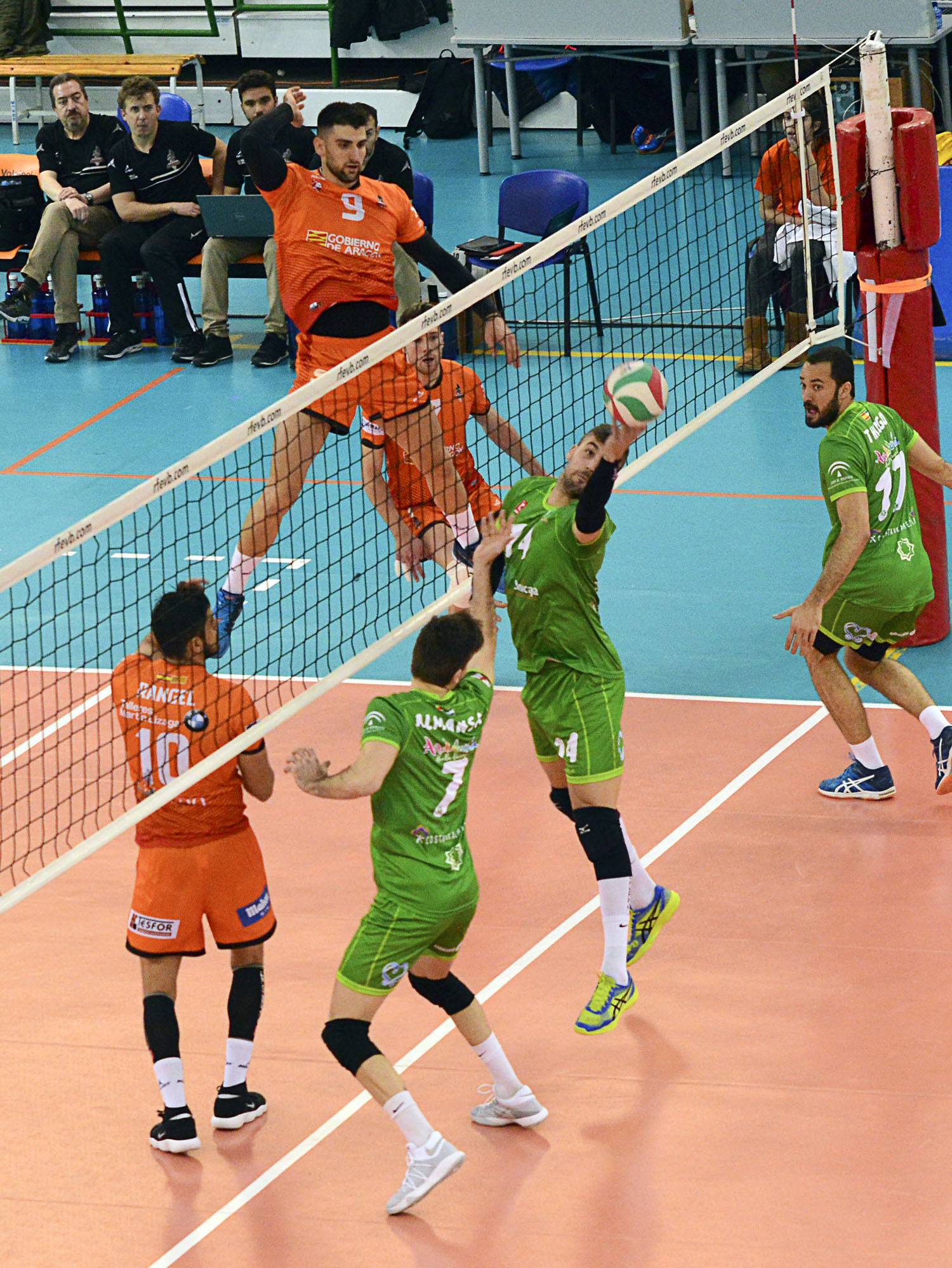 Partido correspondiente a la 20ª jornada de la Superliga Masculina de Voleibol el que se disputó en el Pabellón Los Planos entre el Club Voleibol Teruel y Unicaja Almería, reeditando la final de hace unas semanas de la Copa del Rey. Trabajada victoria para los locales 3 a 1(27-25, 26-28, 25-23 y 25-18).