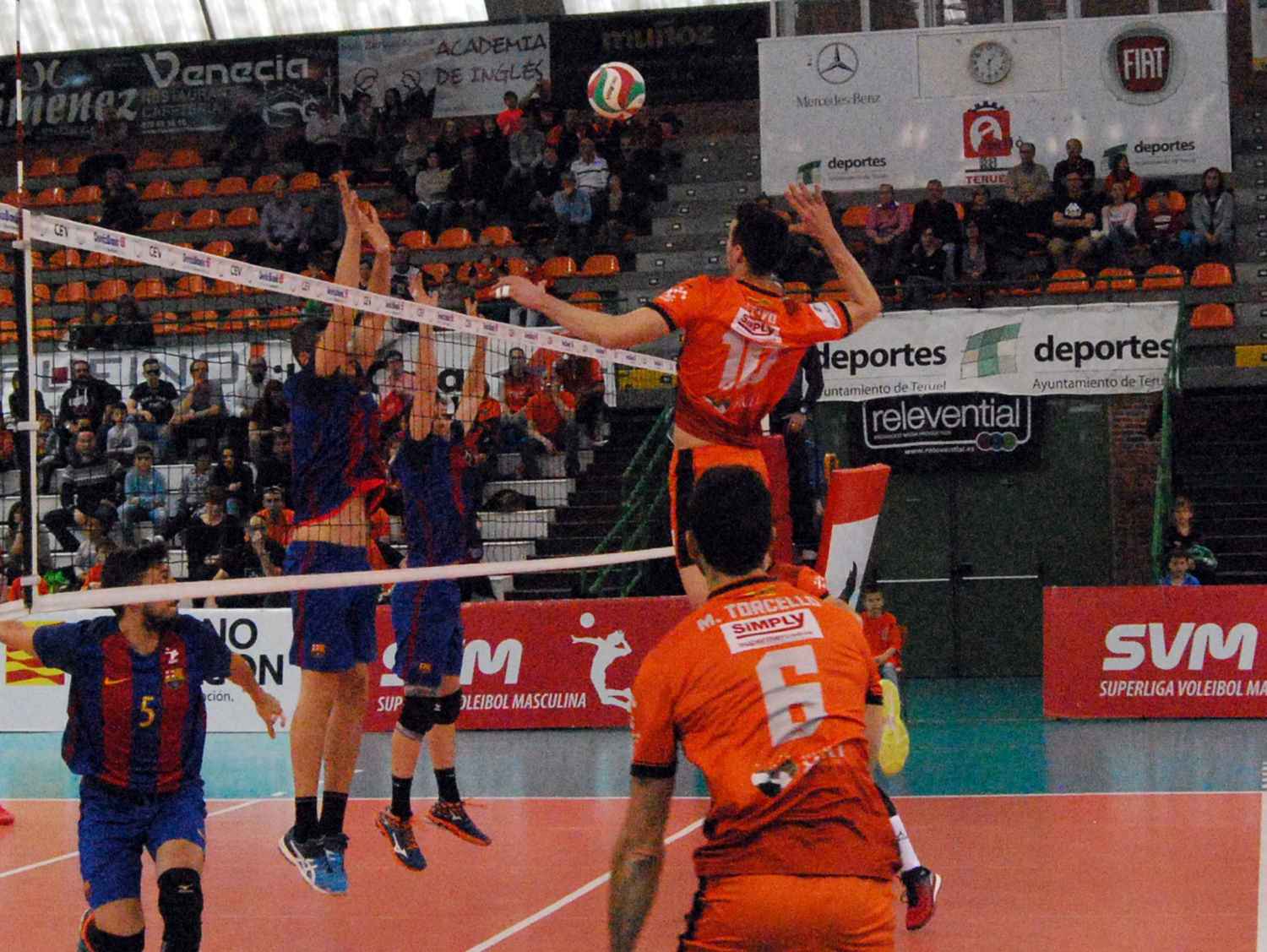 Partido correspondiente a la 20ª jornada de la liga regular el que se vivió en el Pabellón Los Planos entre el CV Teruel y el FC Barcelona que se saldó con victoria turolense con un resultado de 3 a 2 (25-20, 25-22, 20-25, 18-25 y 15-12)