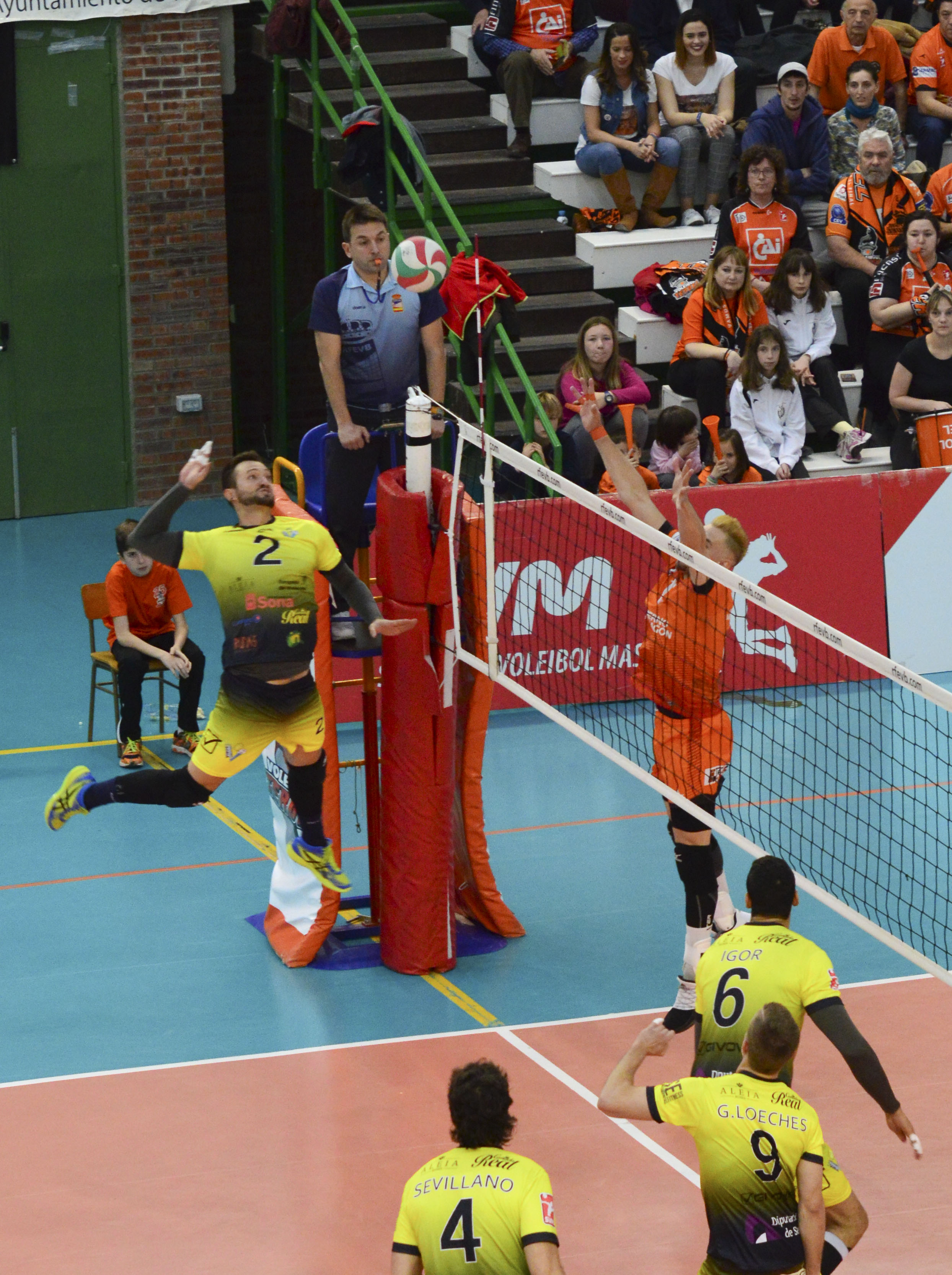 CV Teruel mantuvo el factor cancha y no dio opción a Río Duero Soria en un intenso encuentro, en el que el sólido juego ofensivo del conjunto de Miguel Rivera fue motivo suficiente para encauzar la eliminatoria. Desde el inicio los turolenses dominaron en saque y bloqueo consiguiendo una importante renta mantenida a lo largo del parcial. Mejoraría el equipo soriano en el segundo parcial, pero la eficacia aragonesa en remate, con 17 puntos de Andrés Villena marcó el desenlace. CV Teruel quería sumar la victoria por la vía rápida y obtuvo una renta que controlaría hasta cerrar el segundo punto de la eliminatoria.