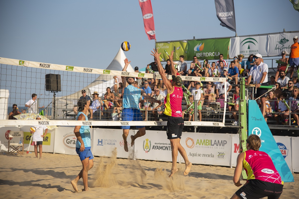 Las gradas han estado abarrotadas durante todo el día en la playa de Isla Canela, donde ha comenzado el cuadro principal después de configurarse por completo con las cuatro parejas clasificadas de la ronda previa.