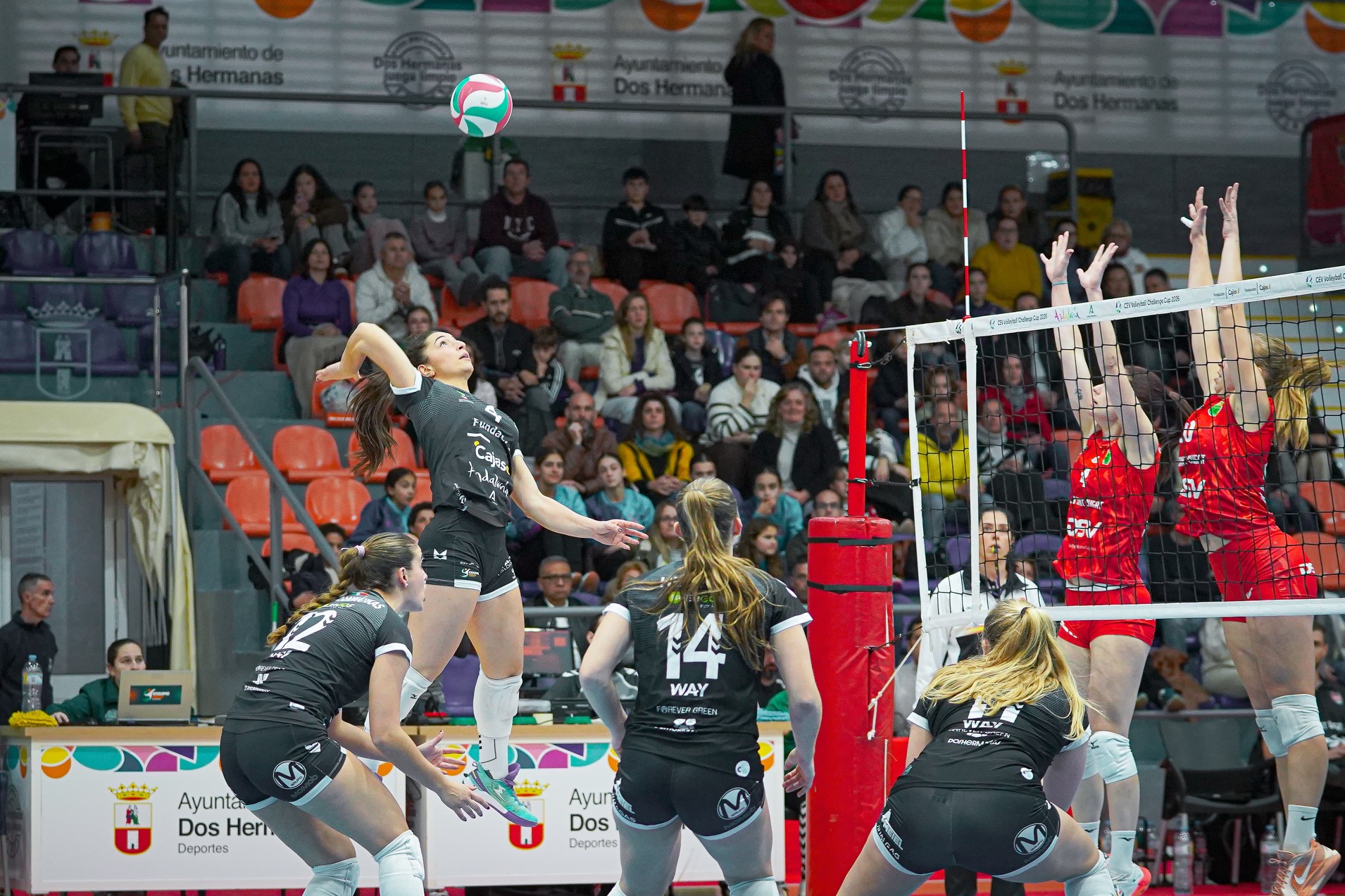 Fundación Cajasol Andalucía firmó una brillante victoria por 3-1 ante DSV Sant Cugat, sumando tres puntos de enorme valor que lo consolidan en la zona alta, acechando la tercera plaza que ostentan las catalanas. El primer set fue muy igualado, pero el bloqueo nazareno y el saque de Leticia Delagrammatikas marcaron diferencias. El segundo parcial comenzó con ventaja catalana, y pese a la reacción nazarena, las jugadoras de Joshua Pérez equilibraron el choque. Las sevillanas se encomendaron al apoyo de su afición y junto a la entrada de Alejandra Pérez el conjunto de Ricardo Fernández dominó con claridad hasta el 25-16. El cuarto set confirmó la superioridad local para sentenciar el choque y despedir 2025 con una valiosísima victoria.