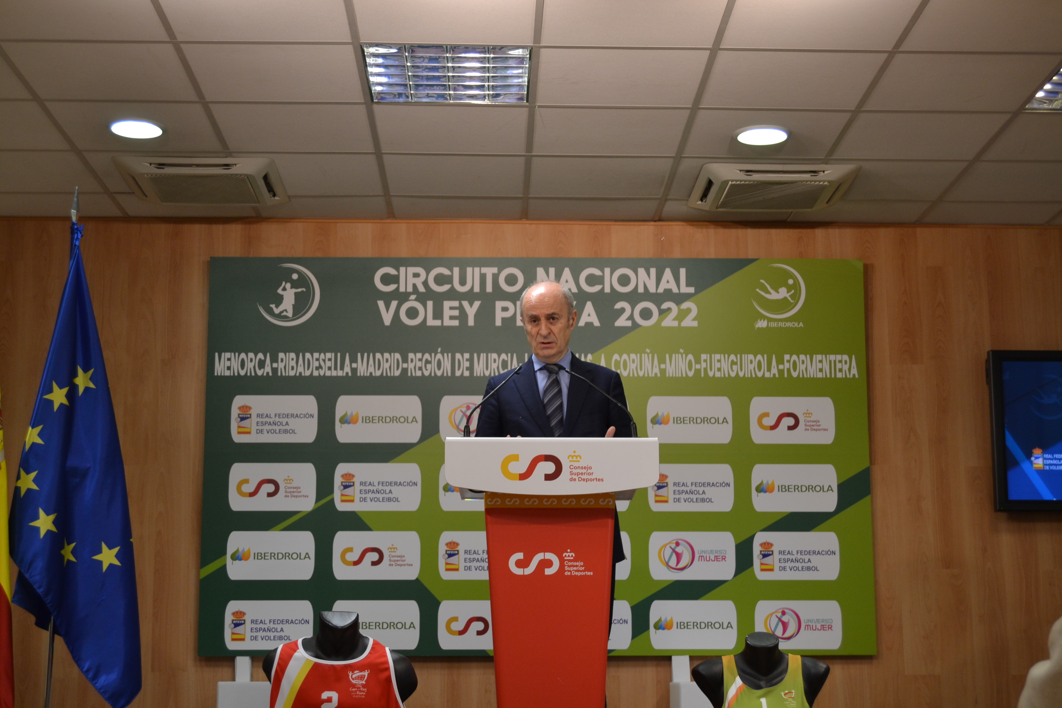 El remozado Circuito Nacional de Vóley Playa 2022 fue presentado esta mañana en el Consejo Superior de Deportes. El Presidente de la RFEVB Agustín Martín Santos, junto al Director de Deportes del CSD, Albert Soler; acompañaron a Luis Fuentes, Concejal de Deportes del Ayuntamiento de Ribadesella y Mónica Martínez, Concejal de Deportes del Ayuntamiento de A Coruña, representantes institucionales de los promotores y las sedes del circuito; y a una amplia representación de los principales protagonistas del vóley playa nacional.