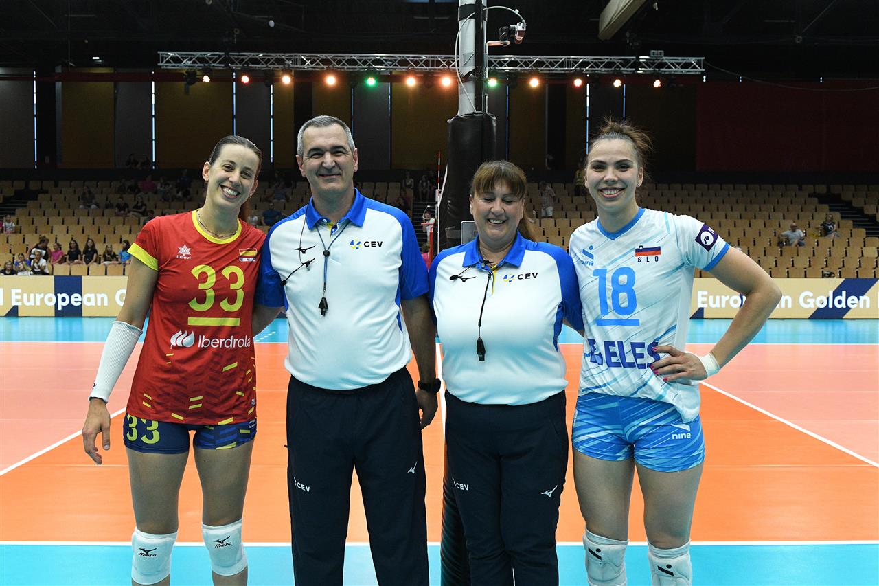 European Golden League 2025 – Fase de grupos Rdeca dvorana, Velenje (Eslovenia) – 15 de junio, 18:00 horas Resultado final: Eslovenia 3 – 1 España Parciales: 19-25, 25-22, 25-18, 25-22 Duración: 1h 50 min (estimada) Árbitros: Davor Cuk (CRO) y Kiril Iliev (BUL)