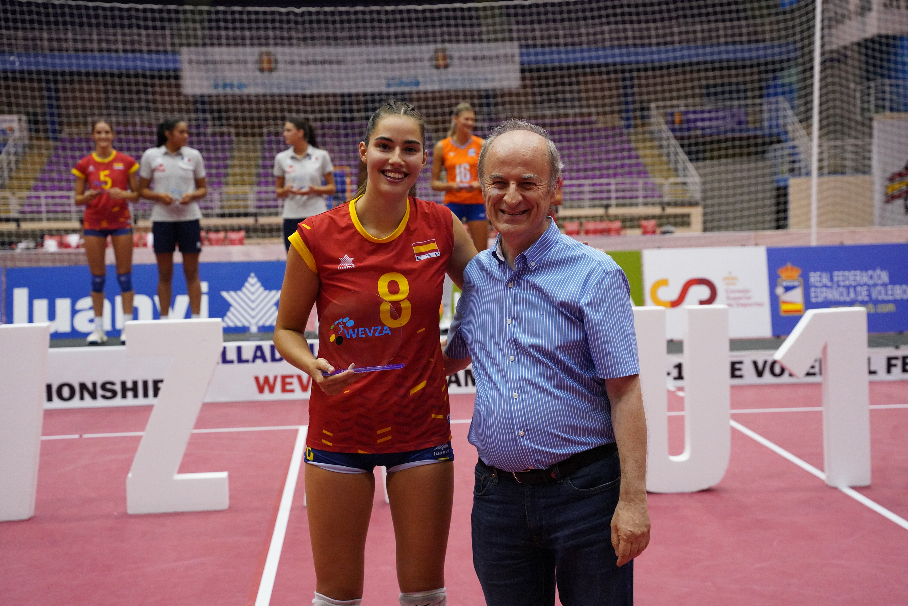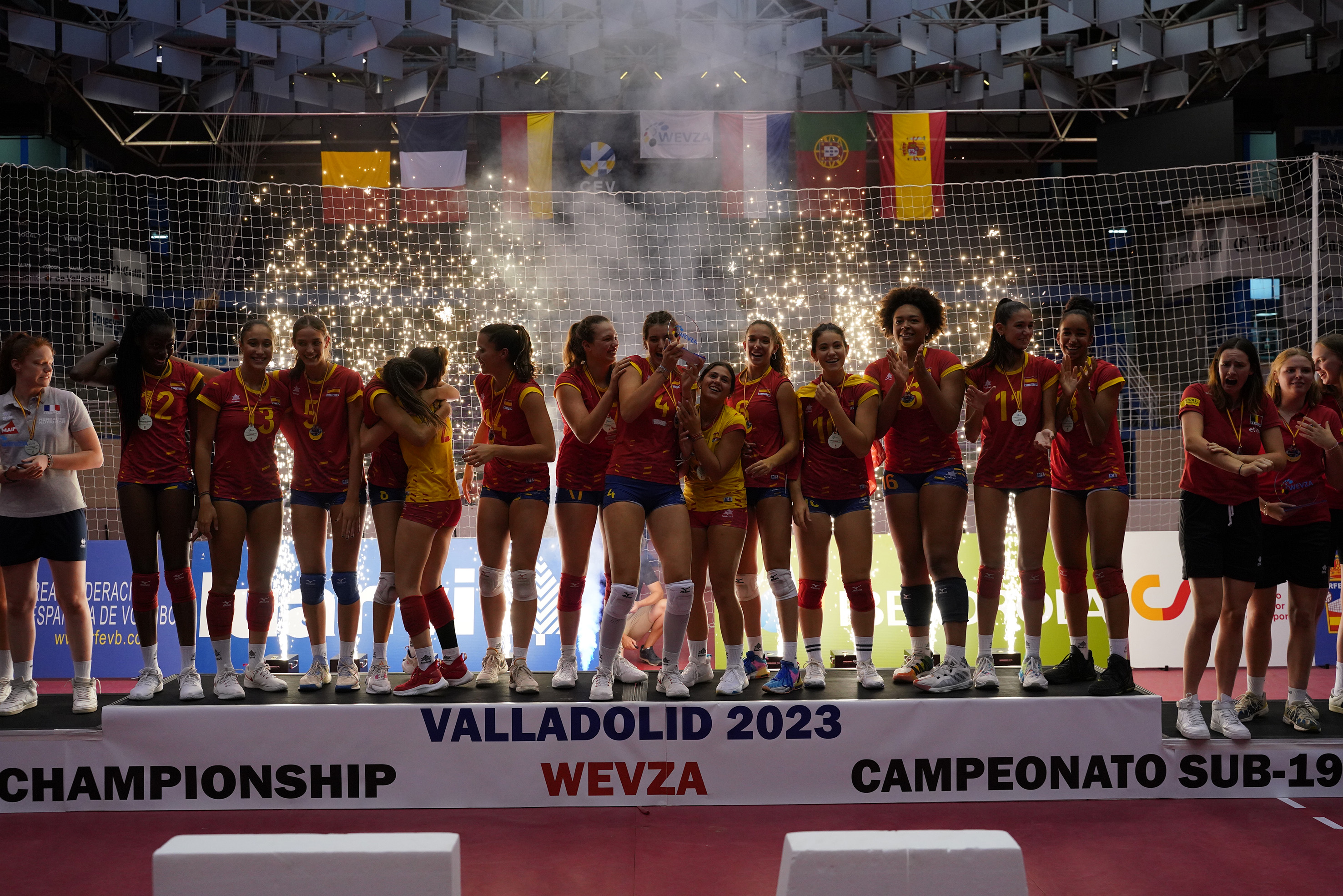La selección femenina sub19 se ha proclamado campeona del WEVZA U19 que se ha disputado a lo largo de la semana en el Polideportivo Pisuerga de Valladolid. España sumó el triunfo en la última jornada para cerrar el torneo con pleno de victorias en los cinco encuentros disputados. El conjunto de Guillermo Orduna superó por la vía rápida a Países Bajos (25-15/25-18/25-22) para levantar el trofeo de campeón y ser acompañado en el podio por Francia y Bélgica. La receptora española Zoi Mavrommatis fue designada MVP del torneo y lideró el equipo ideal junto a sus compañeras Irene del Carmen Ramos y Jessica Akamere.