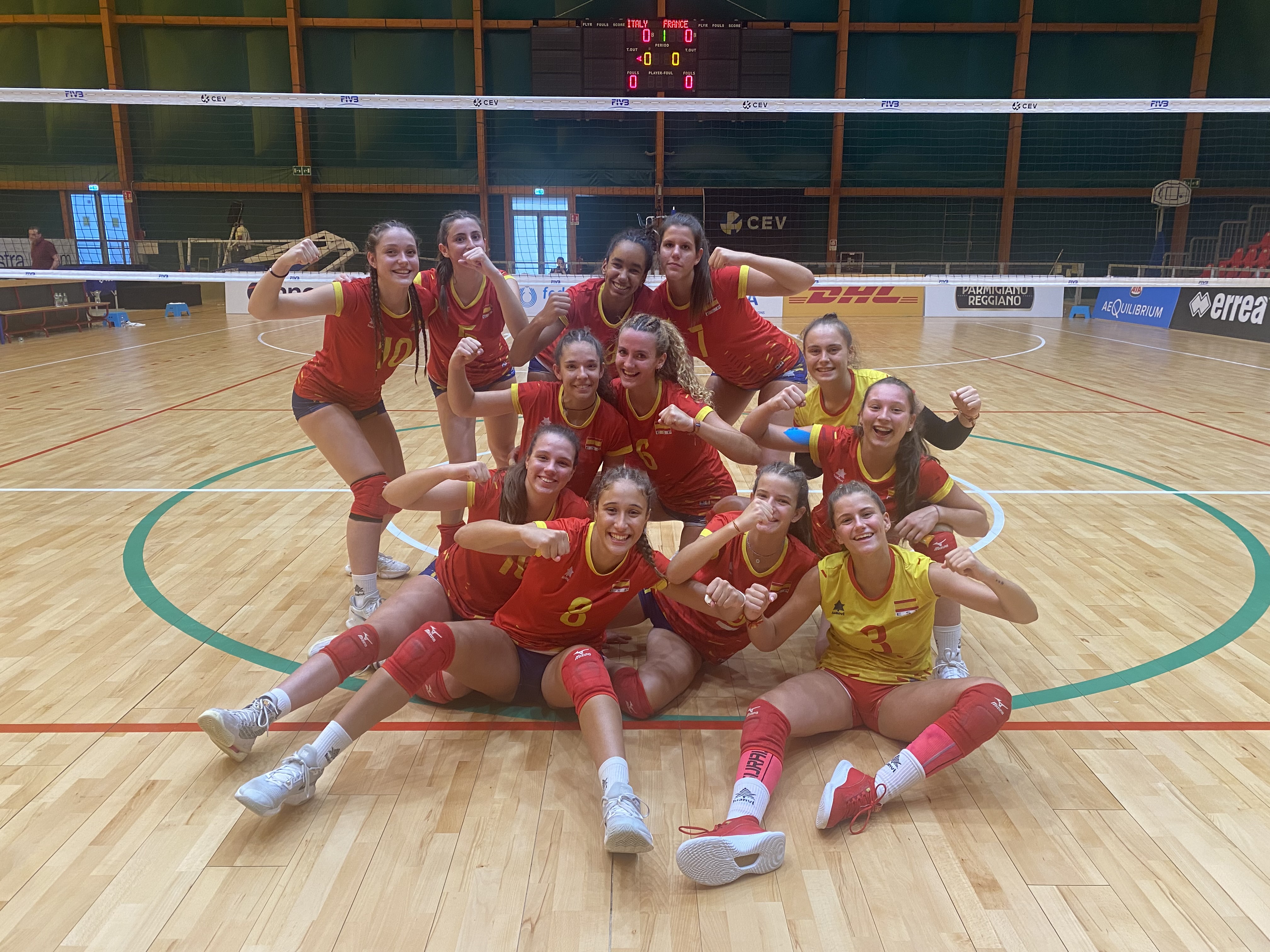 España logra su primera victoria en el torneo WEVZA sub17 femenino que se está disputando en Chiusi, Italia, tras derrotar a Portugal en un emocionante 3-1 (23-25/25-17/26-24/25-10). Los puntos María Brun y Paz Okeke, receptora y central, respectivamente, lideraron al equipo nacional hacia el triunfo siendo las máximas anotadoras de la contienda.