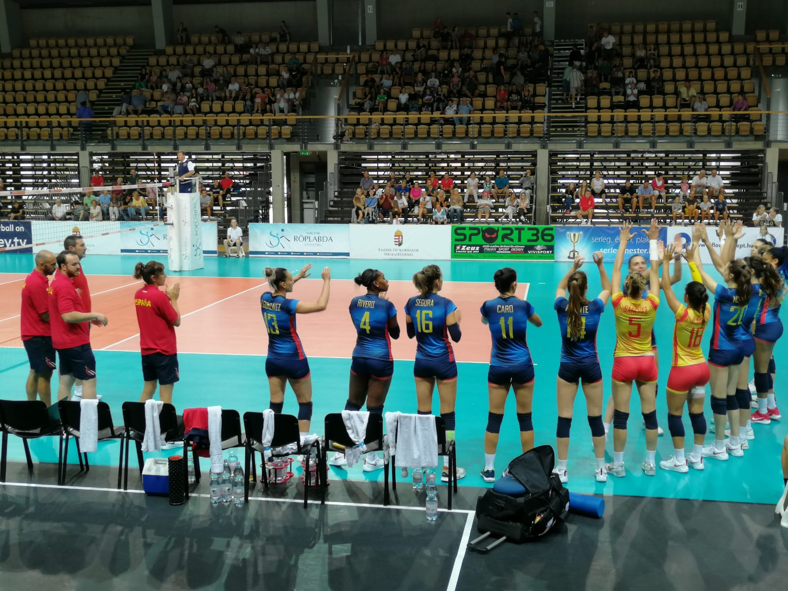 La selección española femenina perdió frente a Hungría por 0-3 (20-25, 18-25, 21-25)  en 23, 24 y 25 min.