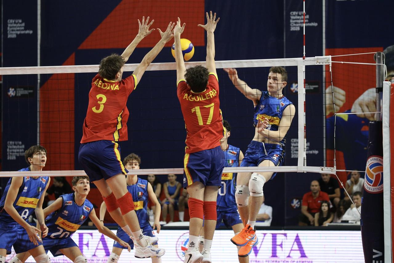 Italia se impuso en la final del Campeonato Europeo Masculino Sub-16 en Ereván con parciales de 25-21, 25-18, 25-23 y 25-19, coronándose campeona. España, entrenada por Diego Taboada, alcanzó un meritorio segundo puesto en el torneo.