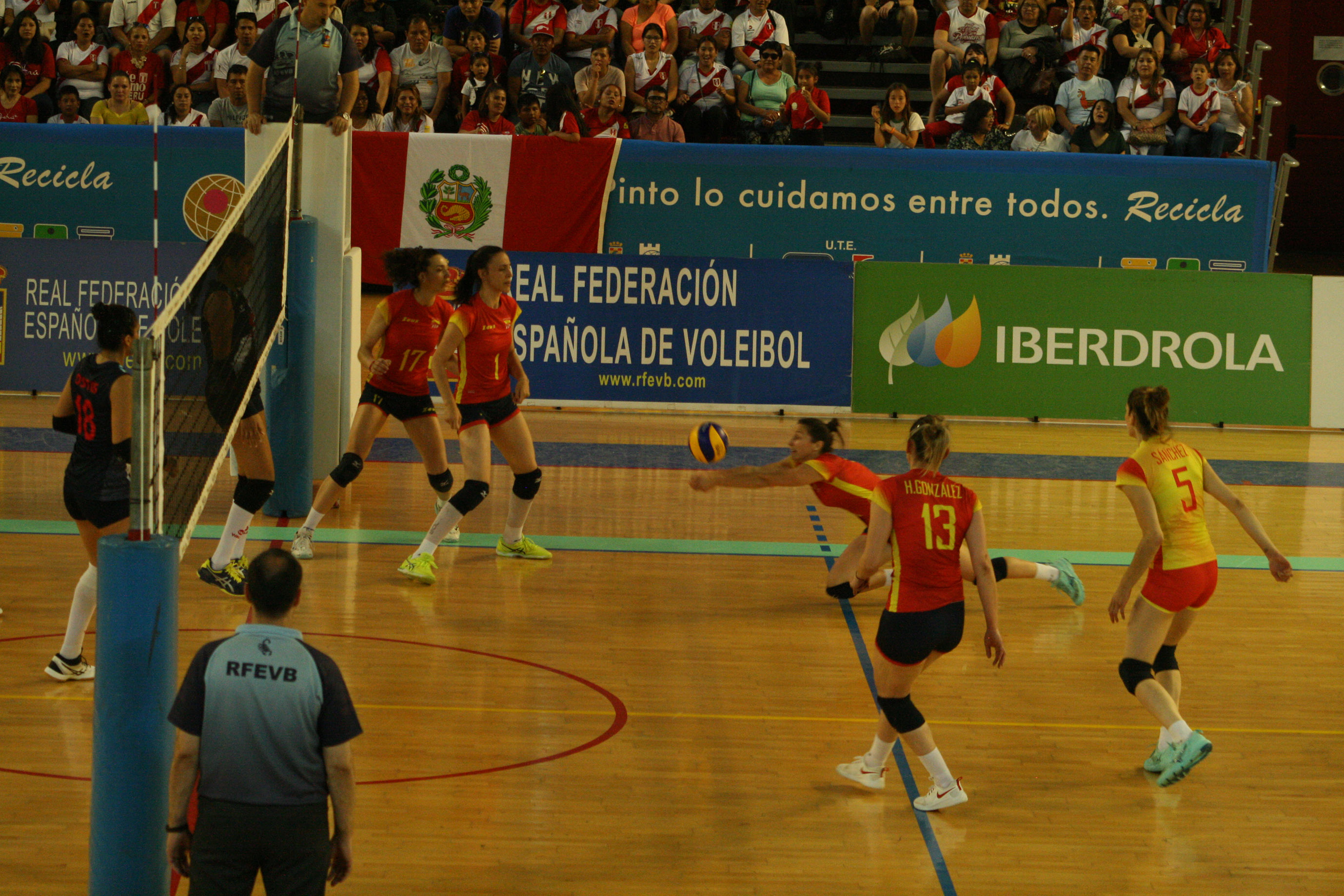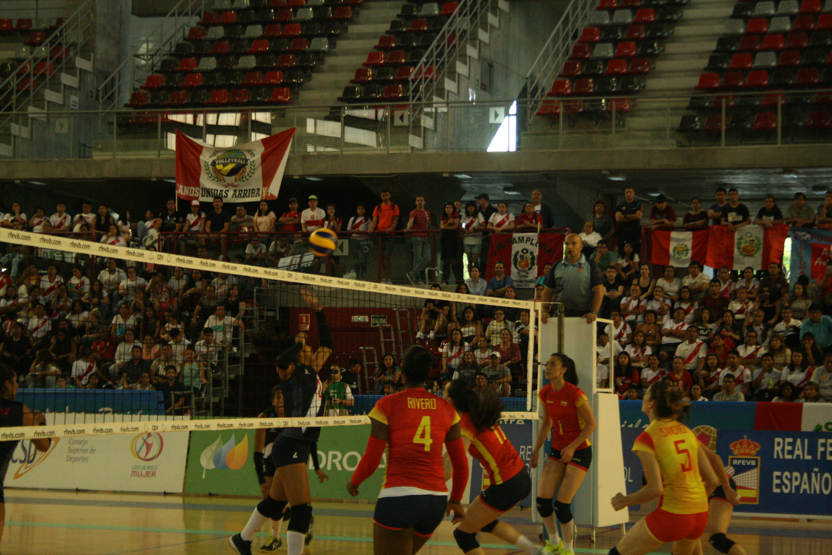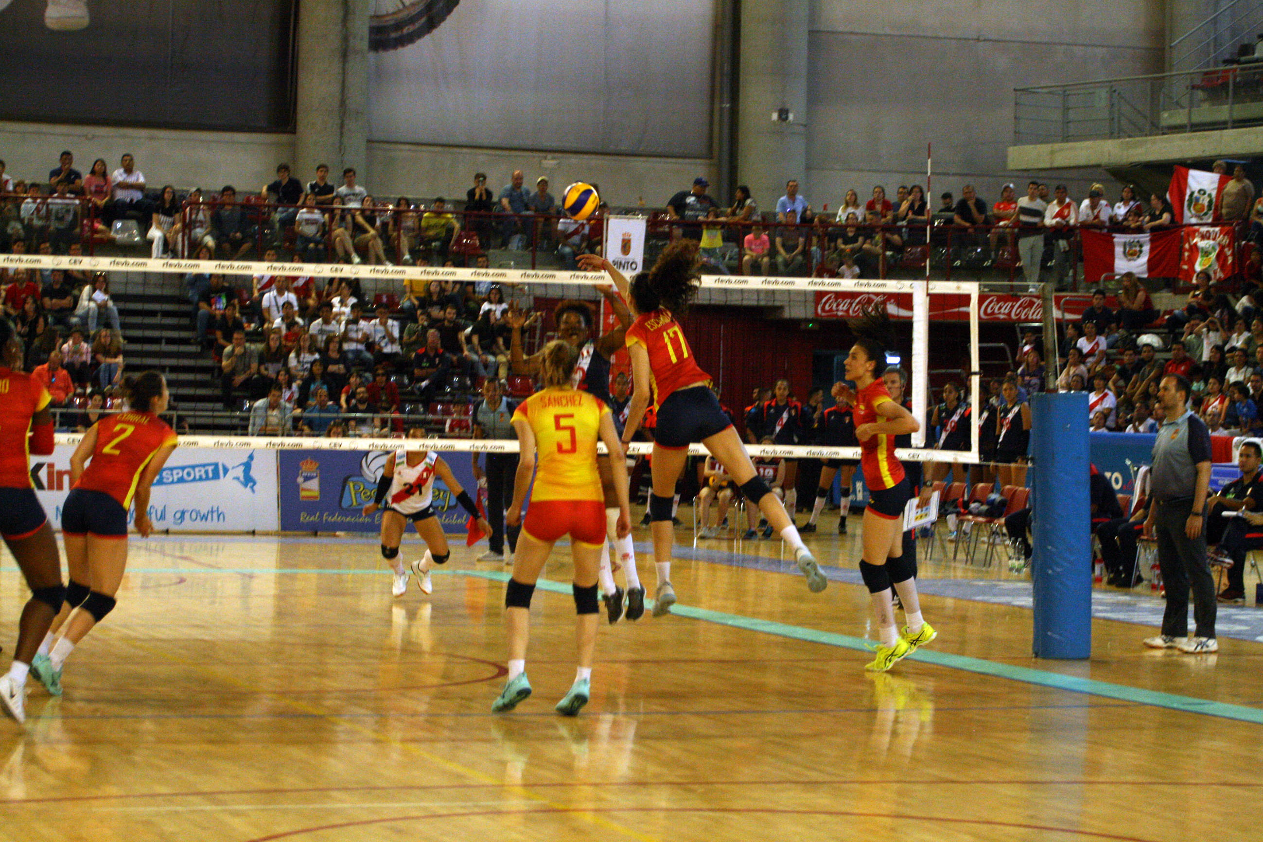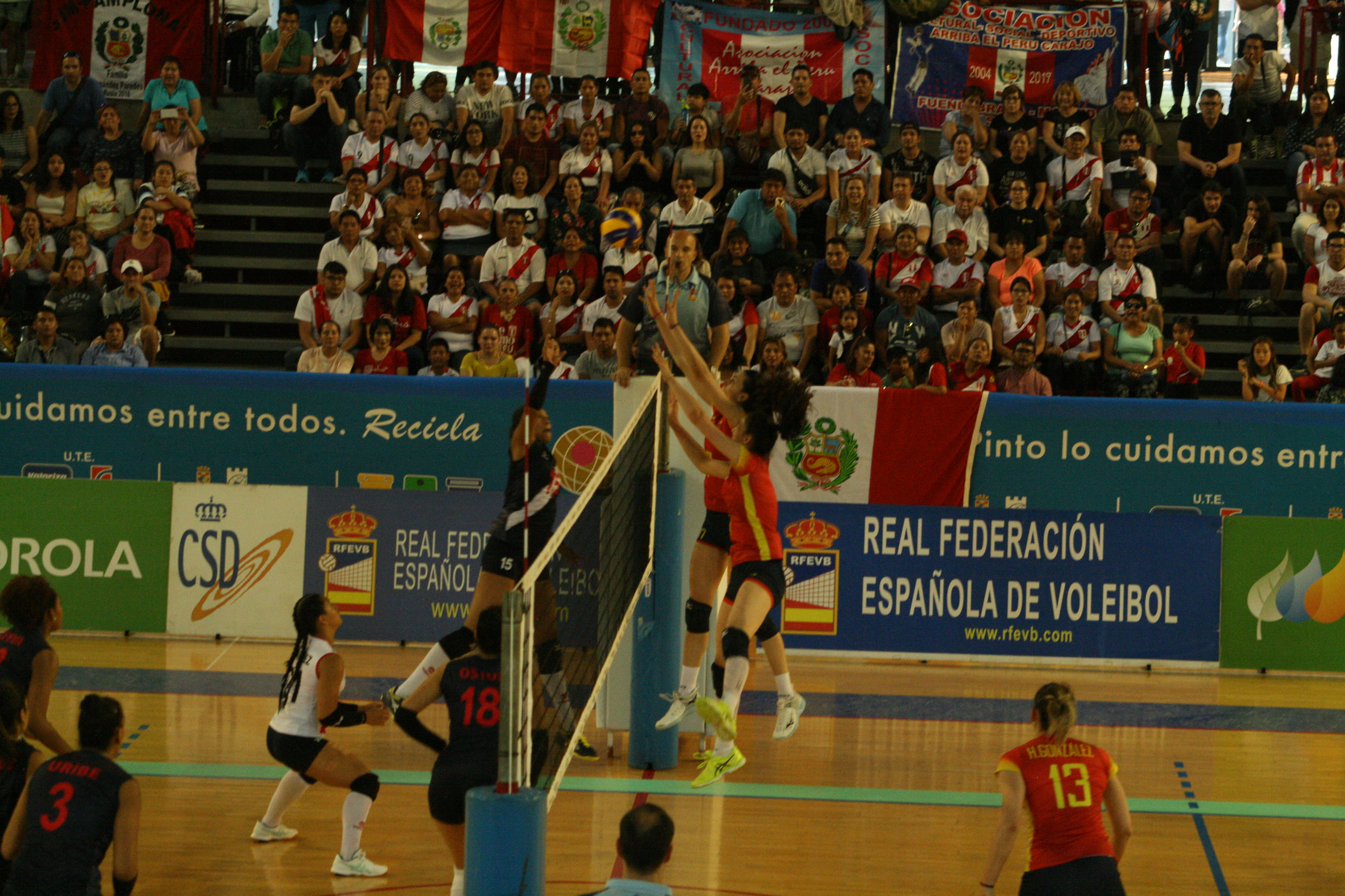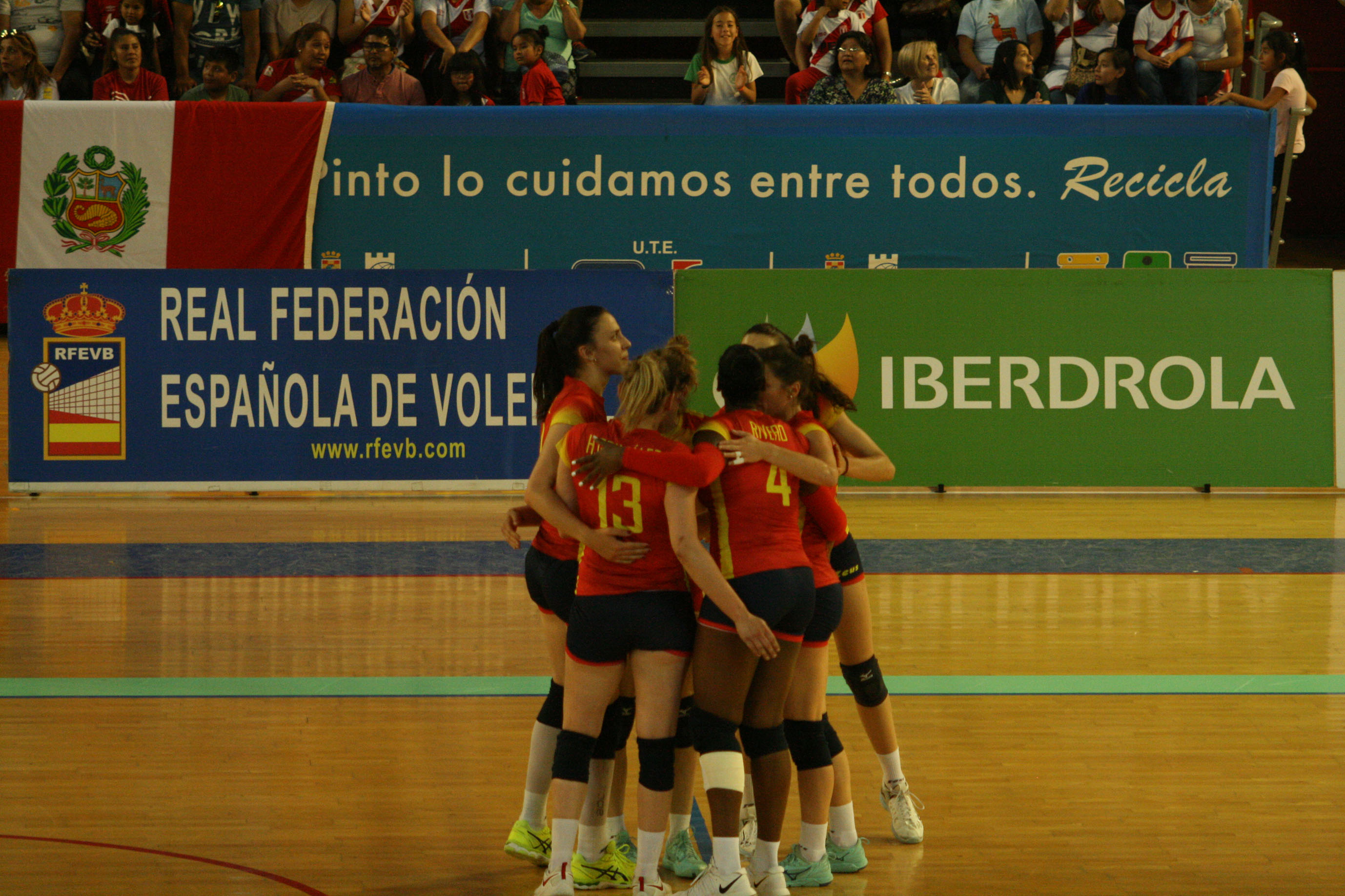 España salió enchufada a por el cuarto set, colocándose 9-5 en el marcador, momento en que acusó el cansancio del encuentro y Perú aprovechó su saque para dejar sin opciones al combinado nacional colocándose con un 10-20 en el marcador que anunciaba el tie-break final. En el quinto, España ya estaba recuperada, lo que le permitió obtener una ventaja de tres puntos gracias a las destacas acciones de Helia González y una buena distribución del juego que impedía la reacción de Perú.