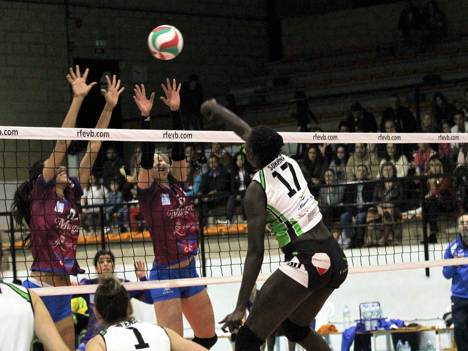 La escuadra extremeña protagonizó un arranque de partido con un ritmo de juego frenético, en el que los buenos balones surtidos desde una más que notable recepción fueron bien utilizados por la colocadora, Beatrix Meléndez-Pál, que con una veloz y agresiva dirección de juego, alternó primeros tiempos con sus centrales, Gueye y Mbow, y pases a las alas para Yohana Rodríguez y Bédmar, que lograron colapsar el sistema defensivo rival para así poder apuntarse el primer set.