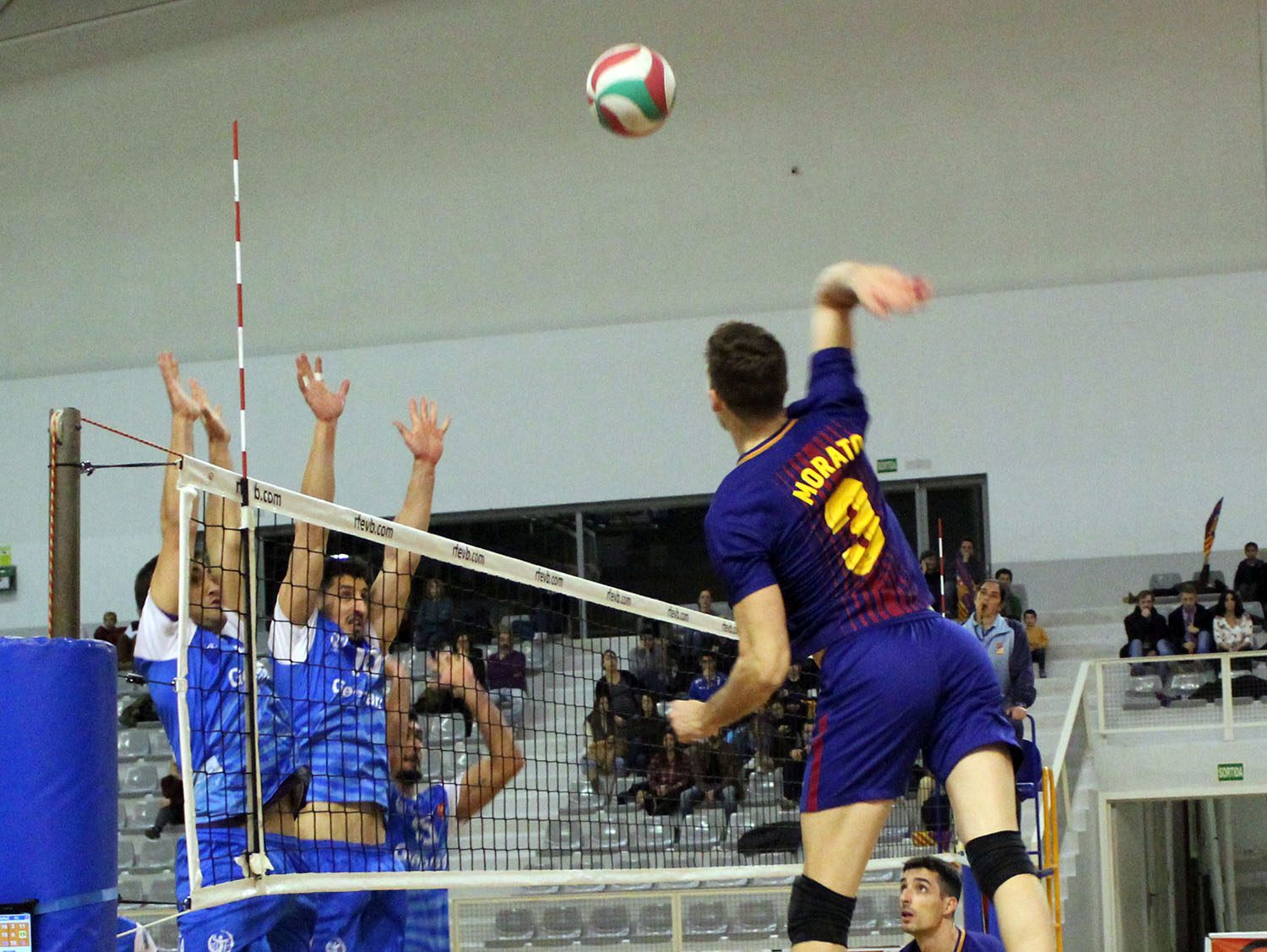 En la tercera manga la superioridad del conjunto catalán sobre todo por el centro, donde Altayó y Vlasev resolvían cómodamente los ataques, junto al buen trabajo colectivo ayudó a que el CV Melilla no tuviera opciones de poner en apuros al conjunto local, y pese a la gran actuación de Mario Dos Santos el parcial se cerró por 25-19.
