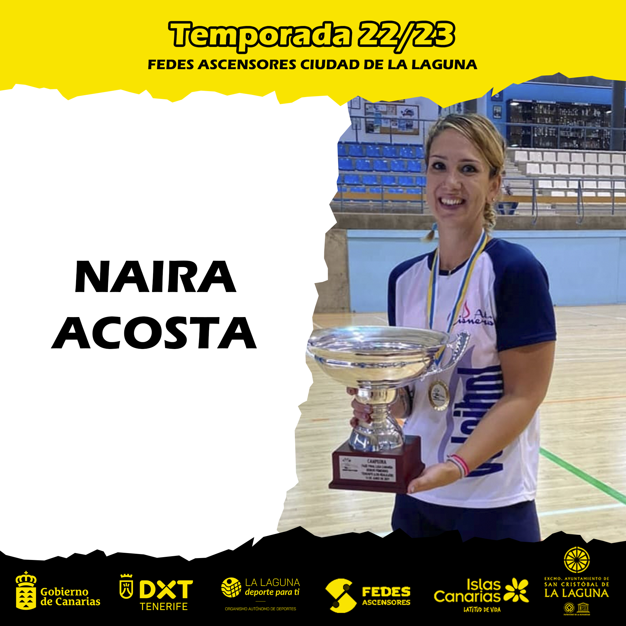 El Fedes Ascensores Ciudad de La Laguna incorpora a su plantilla para la temporada 2022/23 a Naira Acosta. Con experiencia en varios equipos de la Isla y un breve periplo en el voleibol francés, la central se suma a la plantilla aurinegra. Un nuevo reto que la jugadora encara con mucha ilusión: “La verdad que es como cumplir un sueño formar parte del club después de tantos años, ya que estuve en categorías inferiores y me formé en el Aguere. Vengo con el objetivo de dar lo mejor que pueda de mí tanto para el Club como para mis compañeras”.