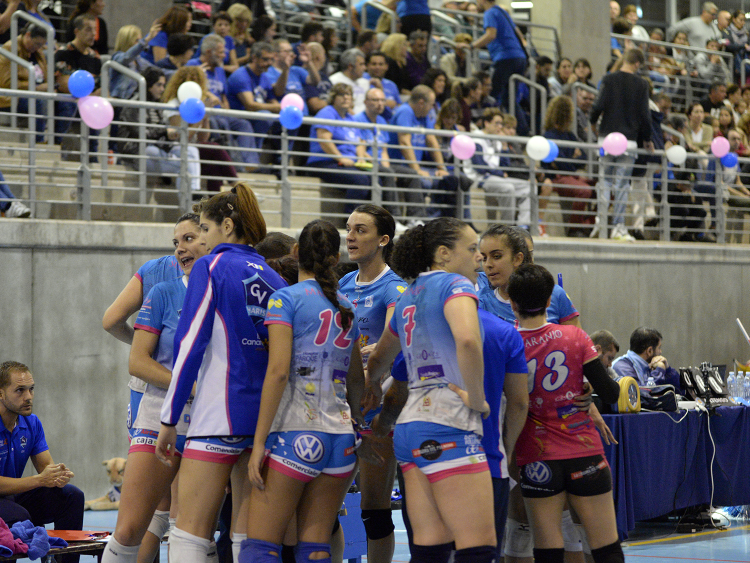Las de David Martín salieron a la pista muy concentradas y dispuestas a tomar rápido ventaja en el marcador (9-3). La solidez en la red, unido a la gran efectividad tanto en ataque como en recepción por parte de las blanquiazules, permitió al Fígaro adjudicarse cómodamente el primer parcial por 25-12.