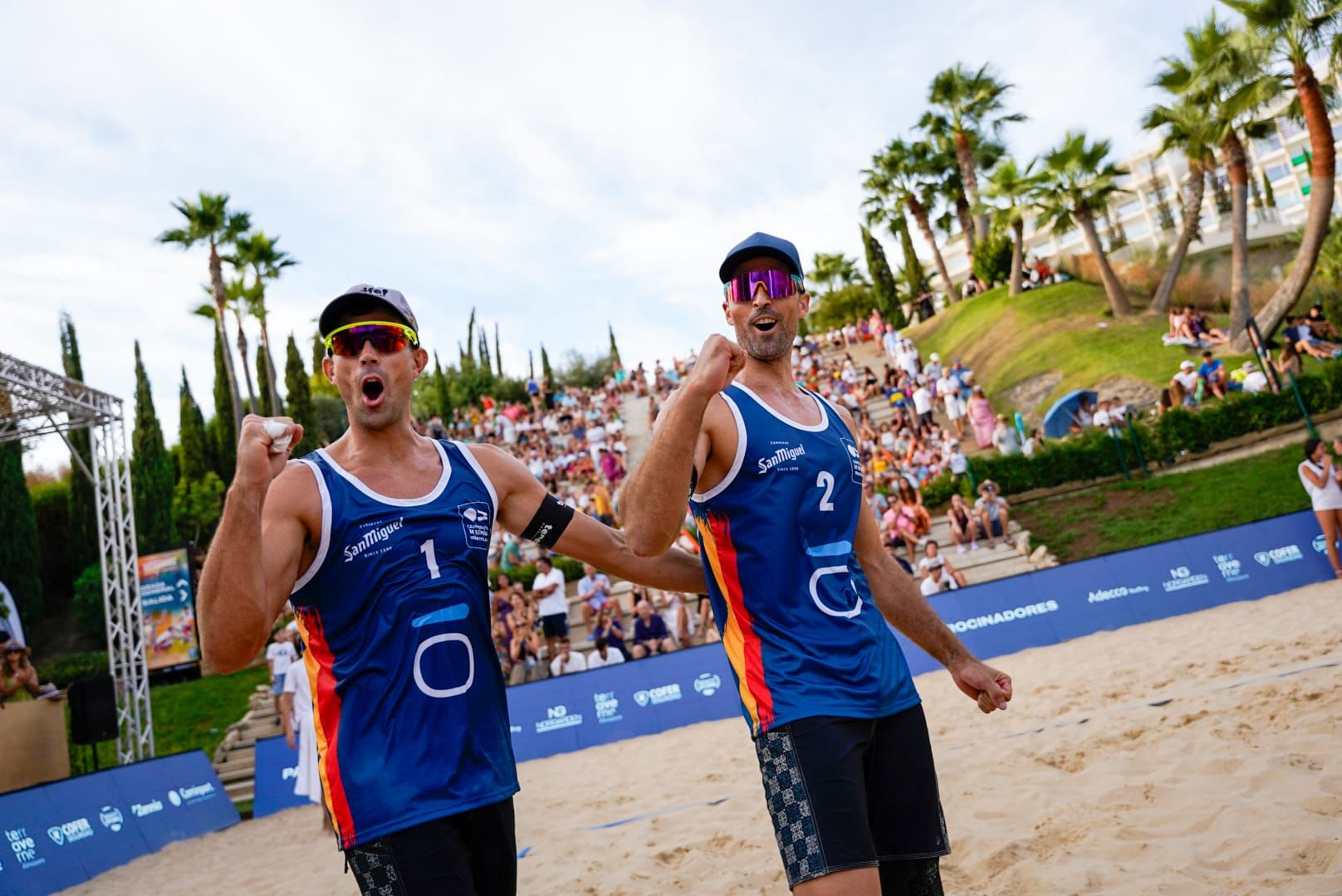 Álvaro Viera y Antonio Saucedo, exentos de la primera ronda, cayeron ante los franceses Kéran Duval y Arthur Canet por 2-0 (21-17, 21-13). También se despidieron Nathan Matos y Pablo Pérez, que plantaron cara a los alemanes Robin Sowa y Jonas Reinhardt en un primer set muy ajustado, aunque finalmente perdieron por 2-0 (30-28, 21-16).
