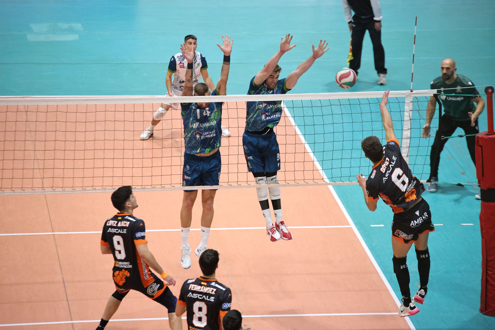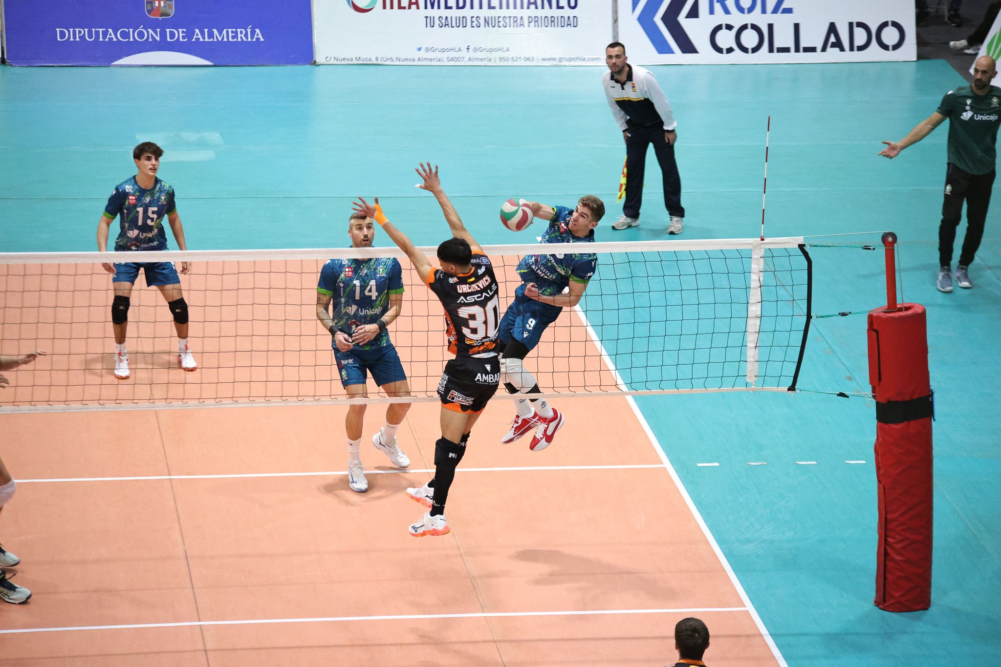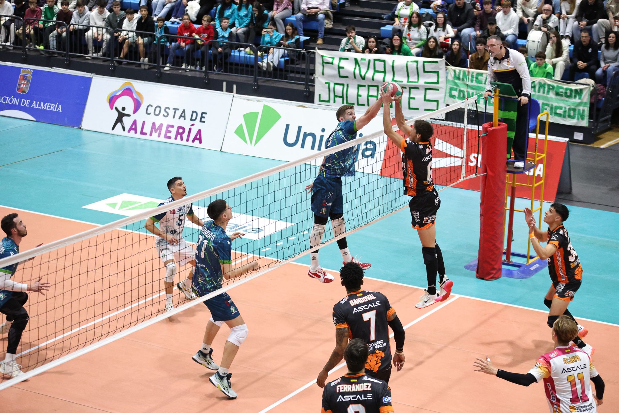Pamesa Teruel Voleibol se llevó en el desempate un choque vibrante en la pista de Unicaja Costa de Almería. El Pabellón Moisés Ruiz presentó un sensacional aspecto, lleno, para rememorar batallas pasadas entre dos de los dominadores del vóley nacional. Los almerienses, pese a las bajas, rozaron la victoria tras remontar el primer set y ponerse con ventaja. Los turolenses forzaron el tiebreak y ahí la contundencia ofensiva visitante decantó la balanza.