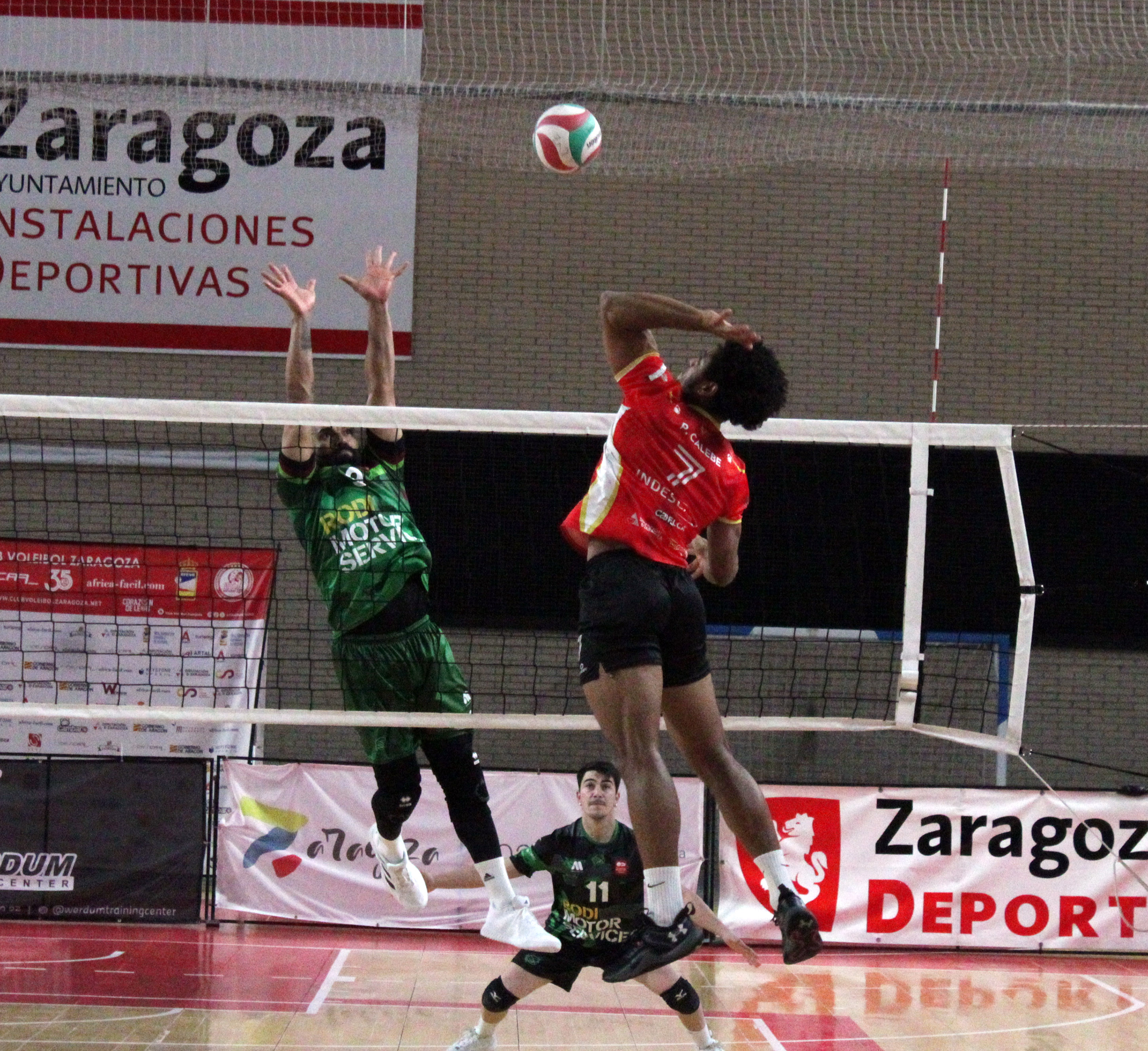 La respuesta llegó en el segundo set, donde el Indescar Zaragoza recuperó el control del juego con un 45% de eficacia ofensiva. Paulo Cabele y Raúl Alonso lideraron el ataque, mientras que Ricardo Sánchez destacó con acciones clave en defensa tras su entrada, asegurando el empate.