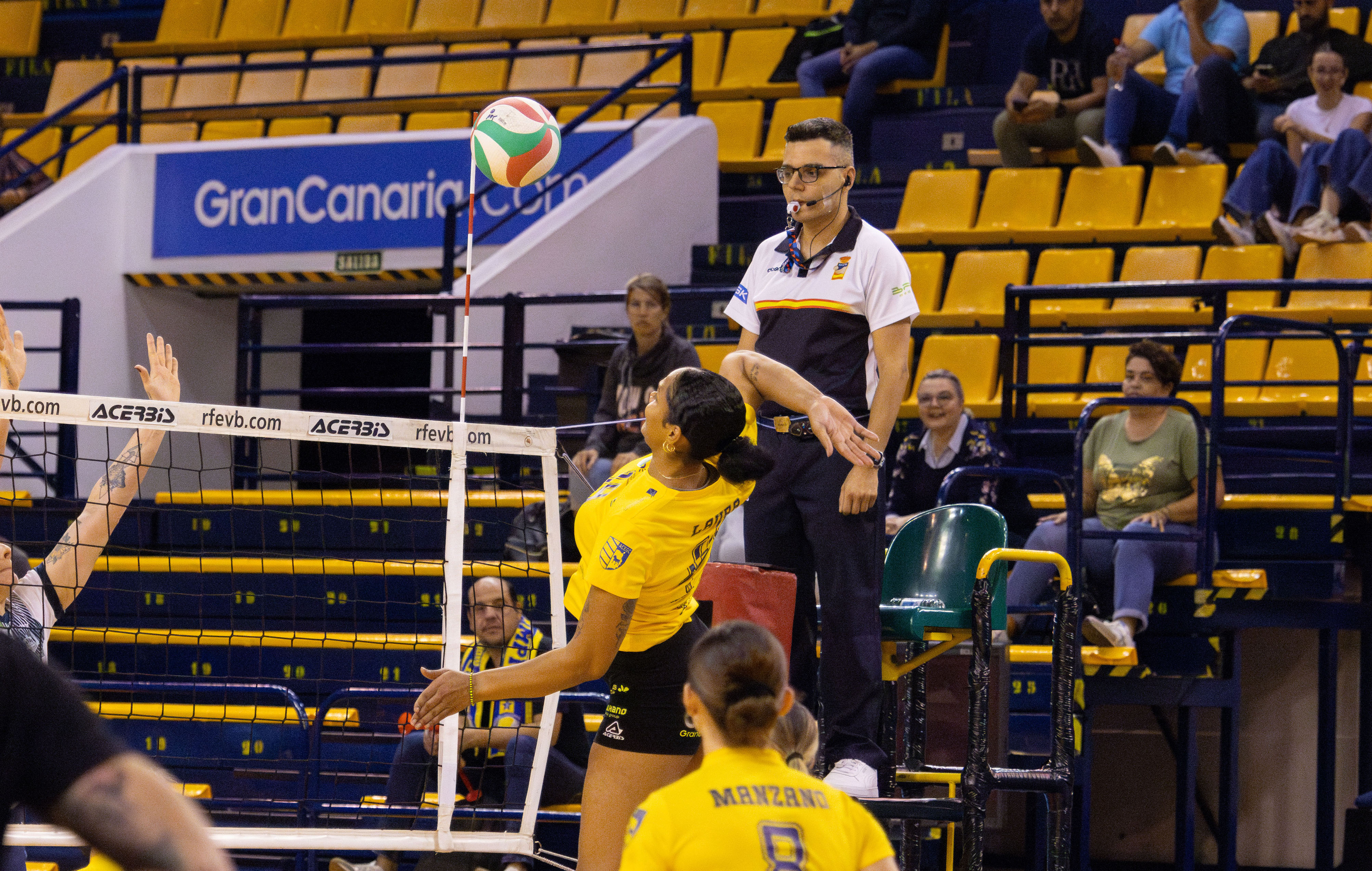 Hidramar Gran Canaria fue de menos a más para vencer en tres sets a Madrid Chamberí. Las madrileñas demostraron su gran momento en el primer set, donde dominaron durante buena parte del mismo, pero en la recta final, la pegada de las vigentes campeonas definió el parcial con dos ataques de Saray Manzano y un bloqueo de Flores. Las pupilas de Fran Carballo aumentaron su intensidad para no dar opción a sus rivales, aumentando la presión con el saque y el bloqueo, y culminar un claro triunfo por la vía rápida.