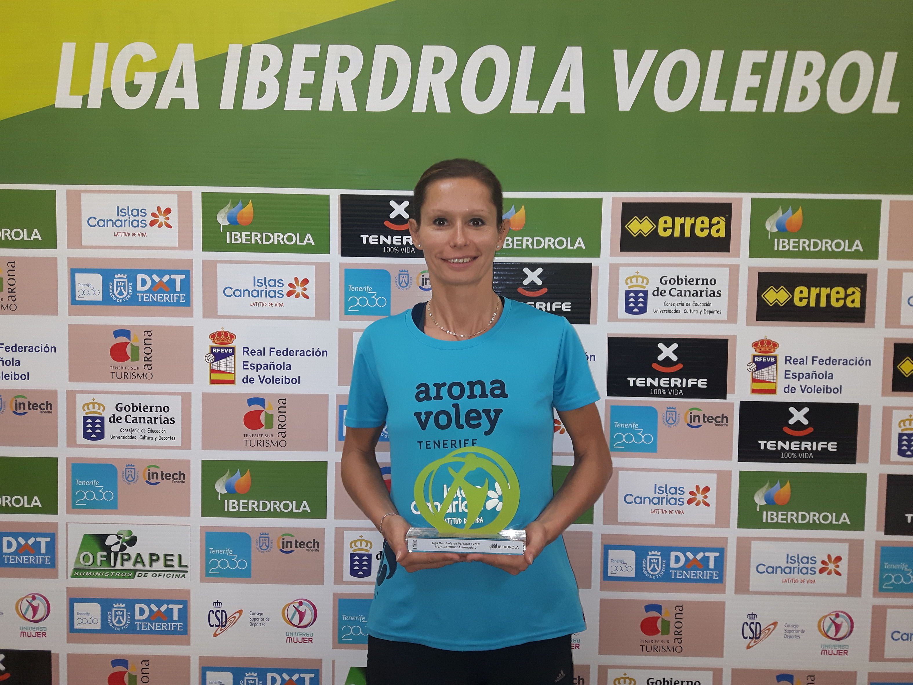 Elzbyeta Nykiel, la receptora de Arona Tenerife Sur, consigue durante el primer fin de semana de semifinales de la Liga Iberdrola su cuarto galardón de MVP de la jornada. La jugadora polaca lideró a sus compañeras para lograr el triunfo en el primer partido de su semifinal ante Fachadas Dimurol Libby´s y capturar el factor cancha en la igualada eliminatoria entre equipos tinerfeños.