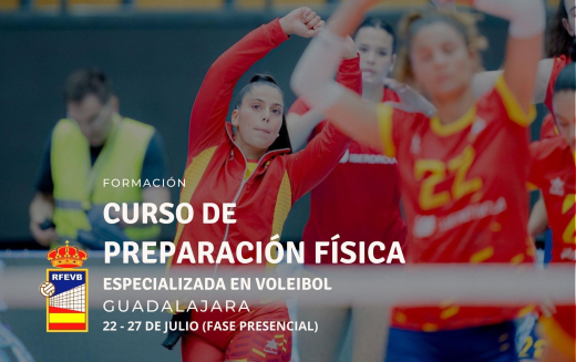 La Real Federación Española de Voleibol convoca la segunda edición del Curso de Preparación Física Especializada en Voleibol que constará de dos fases; una primera fase a distancia entre el 12 y 18 de julio, con un total de 9 horas de formación, y una segunda parte presencial, del 22 al 27 de julio en Guadalajara, que contará con 48 horas formativas.
