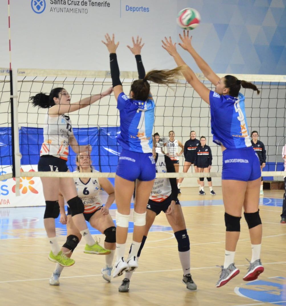 La doble visita de Volei Grau Castellón a Las Palmas se saldó con dos derrotas que pese a mantener a las castellonenses en el liderato, ven como su ventaja se reduce ante CD Heidelberg Mr. Kale y CV CCO 7 Palmas, sus verdugos este fin de semana. CV Esplugues venció en el desempate a Voley Ciutat CIDE, en una jornada plagada de tiebreaks, con los triunfos de UBE L´Illa Grau en la cancha de Vall D´Hebrón y de SIMC3 Premiá de Dalt ante CAEP Soria.