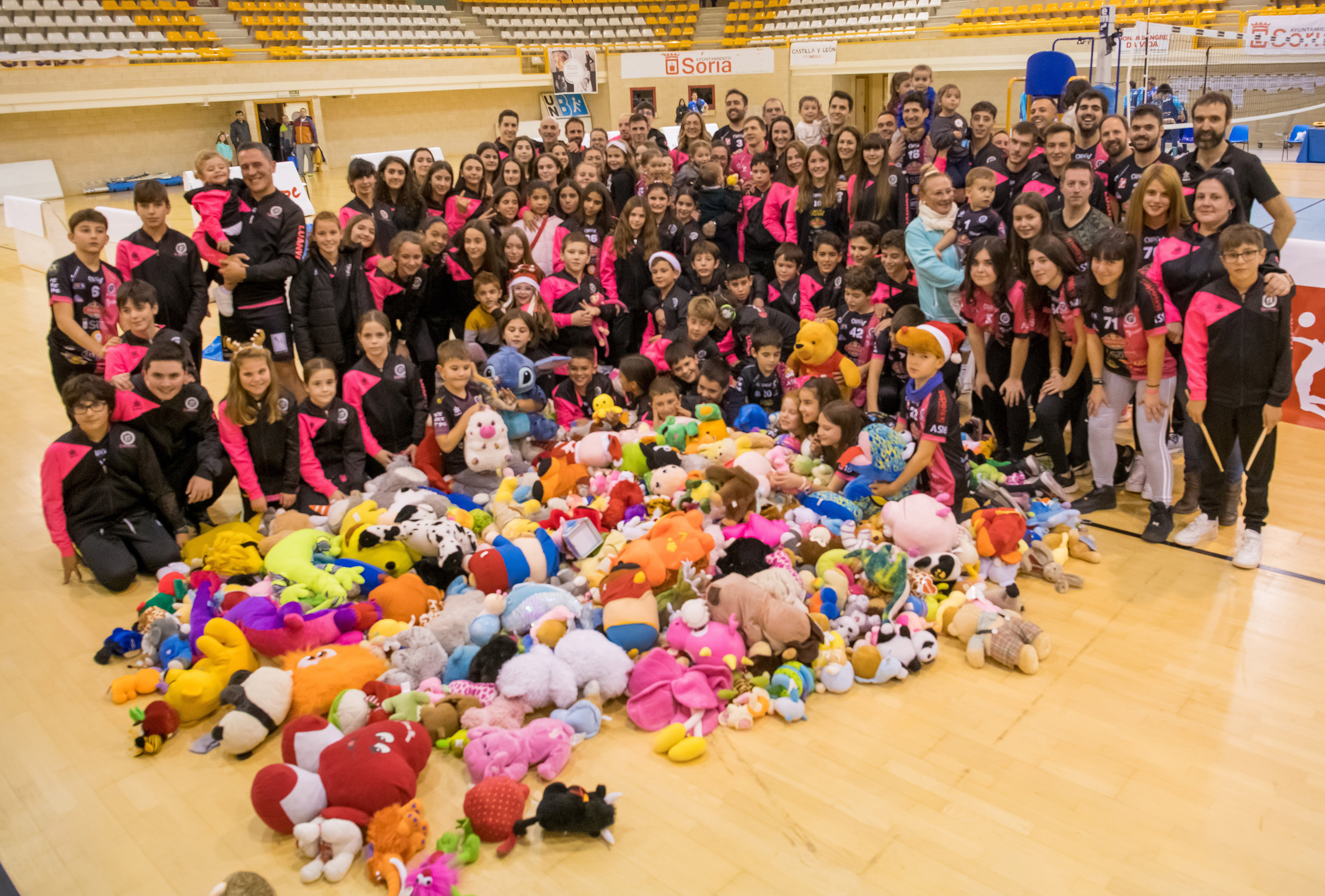 Tras el fin del encuentro se produjo el momento más esperado de la cita que el Sporting tenía con la afición en Los Pajaritos. En el momento que el árbitro pitó el último punto, comenzó la espectacular lluvia de peluches solidaria, con cientos de muñecos cayendo desde las gradas y cubriendo de color el parqué del Polideportivo del Pabellón. Los Gaiteros de la Chata amenizaron este momento tan especial en el que el club logró recoger varias centenas de peluches en favor de Cáritas Infancia Soria.