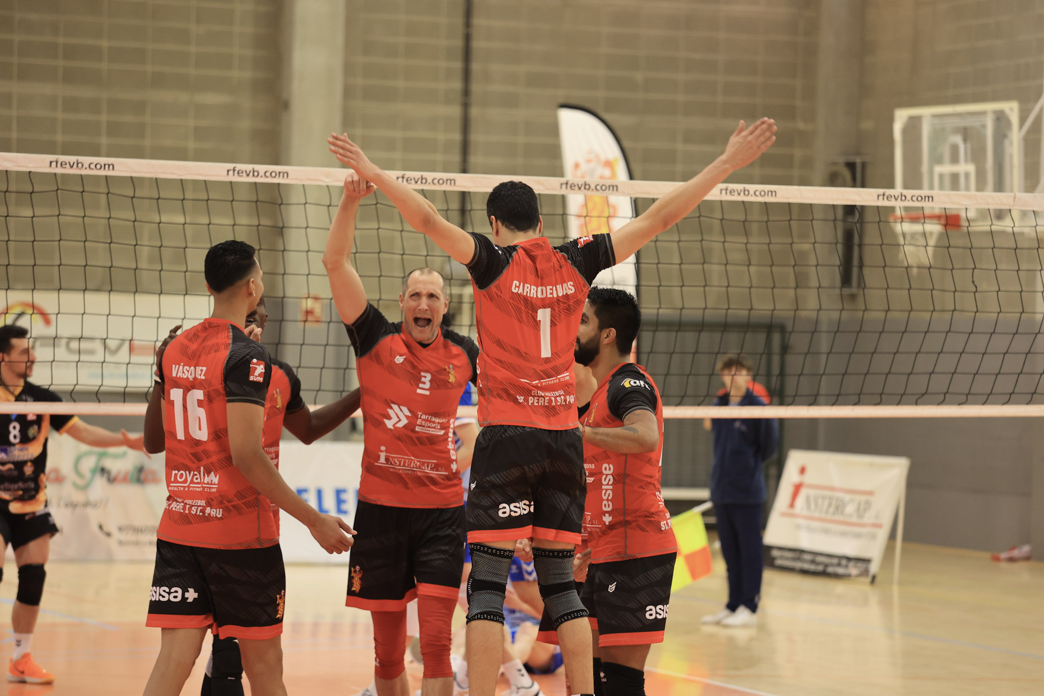 Pamesa Teruel Voleibol mantiene su línea de resultados superando en tres sets a Grupo Rafael Afonso San Roque. Los turolenses mostraron su fortaleza en bloqueo para cortar los intentos del bloque de Alberto Rodríguez por sumar la victoria que necesitaban para estar en las eliminatorias por el título. Mauro Fuentes y Pedro Pinto llevaban a los canarios a disponer de varias bolas de set en el tercero para alargar el encuentro, pero dos acciones consecutivas de Hoyos ponían el punto final al duelo. El encuentro entre CV Melilla y Arenal Emevé no pudo celebrarse como estaba previsto al sufrir el conjunto gallego problemas con su desplazamiento hacia la Ciudad Autónoma.