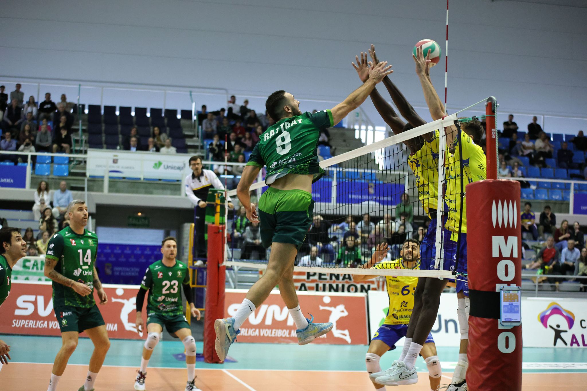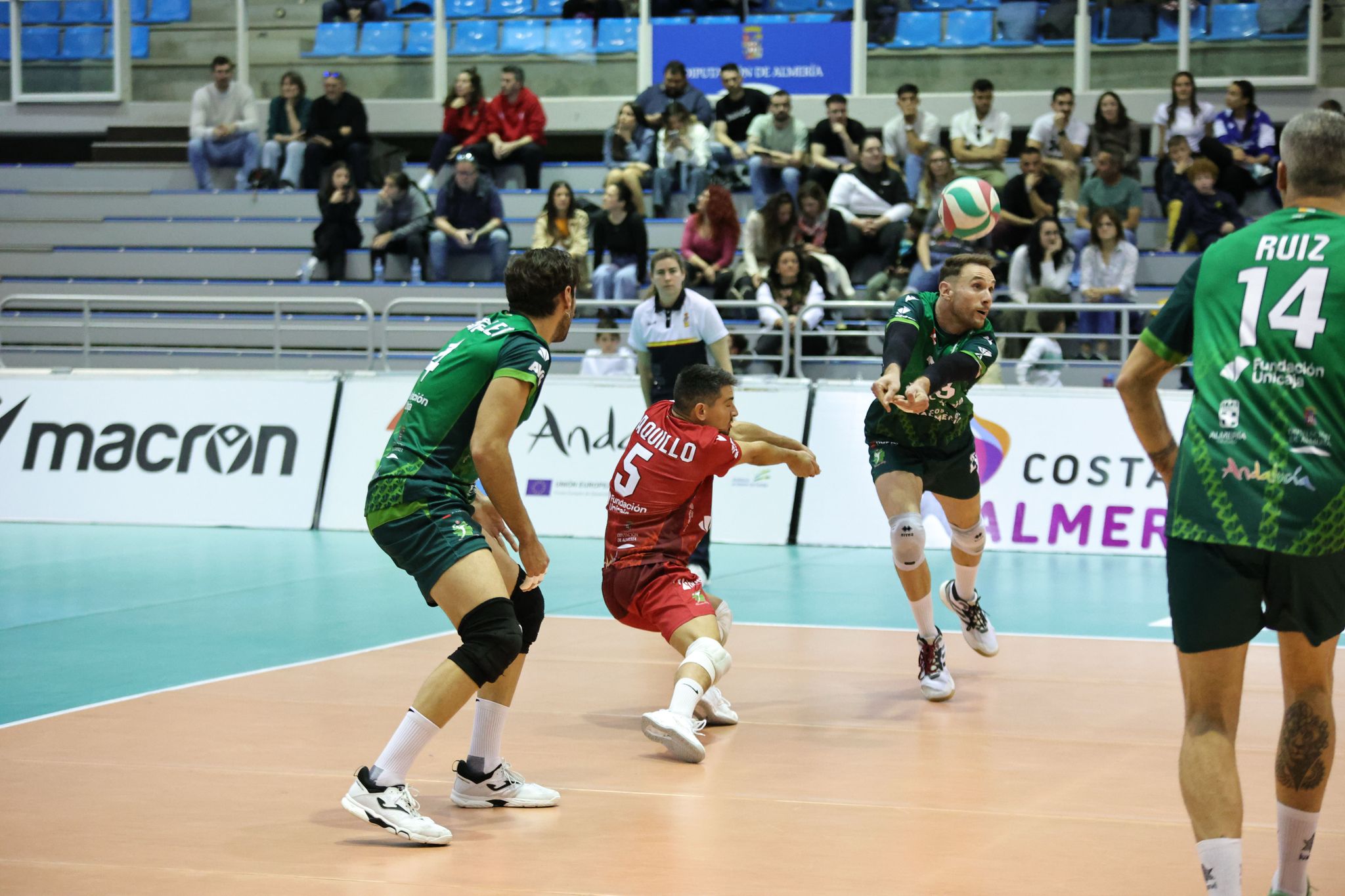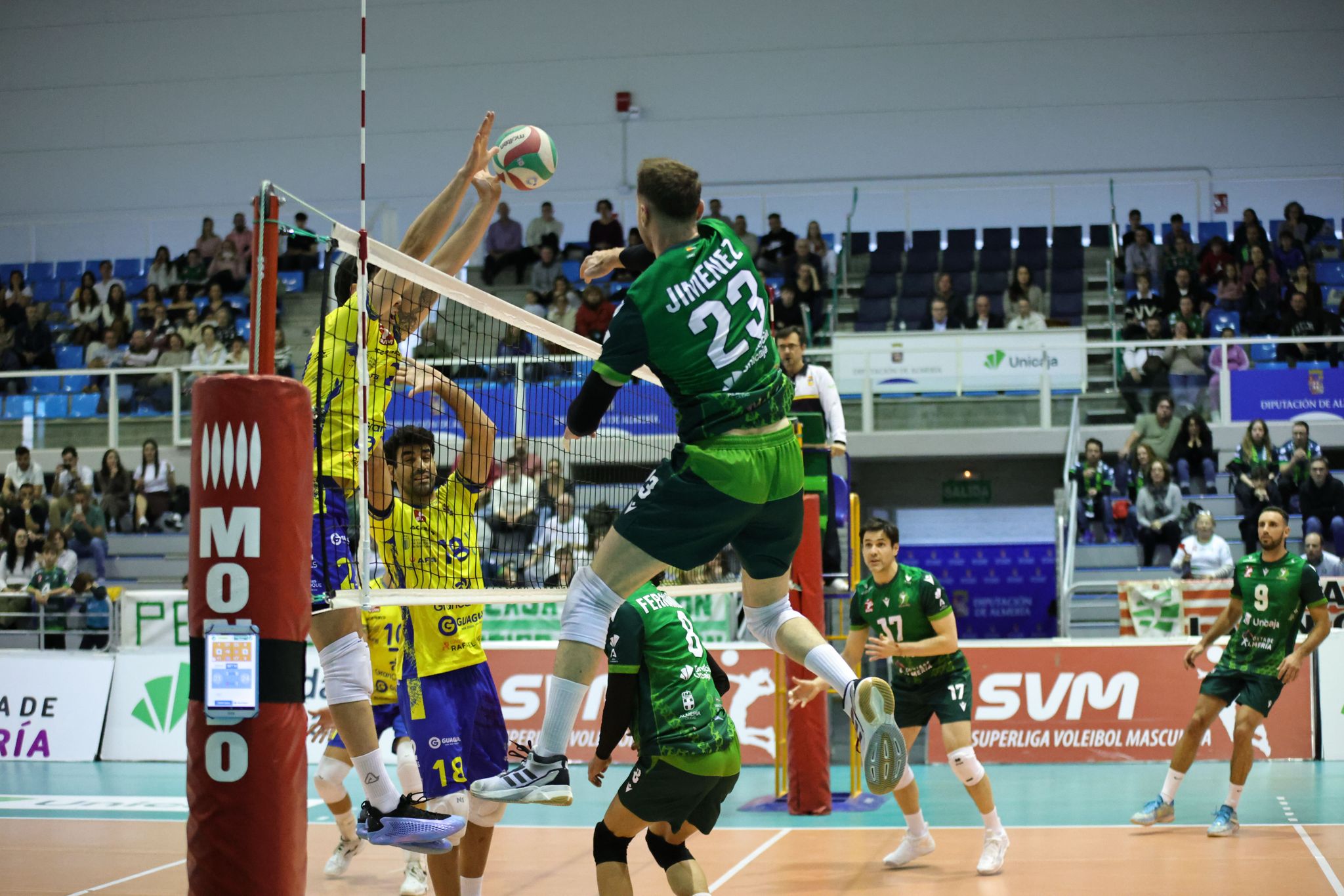 Unicaja Costa de Almería certificó de forma brillante su sexta plaza derrotando al líder CV Guaguas. Sergio Miguel Camarero hacía rotaciones en su equipo inicial, que se veía sorprendido por el rendimiento del conjunto de Pablo Ruiz. Los puntos de Rattray y Burja Ruiz, enfrentándose ante su exequipo, dictaban sentencia en los apretados finales de set, impidiendo que el aporte de Almansa y Bezerra pudiera alargar el encuentro.