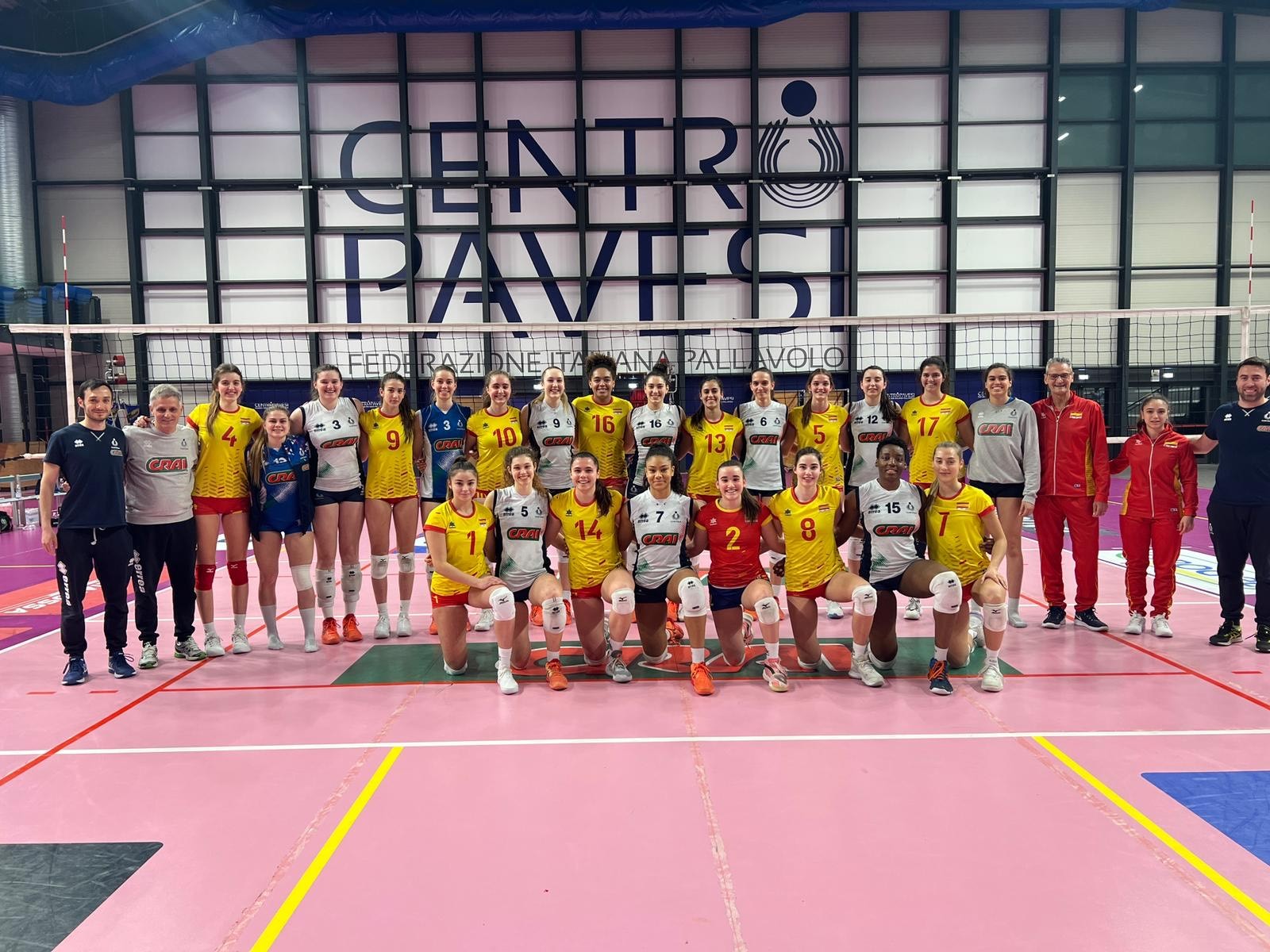 Nuevamente, en un choque que se resolvía en cuatro sets pactados entre los técnicos de ambas selecciones, el bloque dirigido por Guillermo Orduna le plantó cara a sus rivales. Las italianas fueron determinantes y tomaron mejores decisiones en sus acciones de ataque, decantando la balanza a su favor y logrando cerrar el marcador a 25 en los tres primeros sets. Por su parte, las españolas no bajaron los brazos ni el nivel de juego para hacerse con el cuarto y último parcial del encuentro.