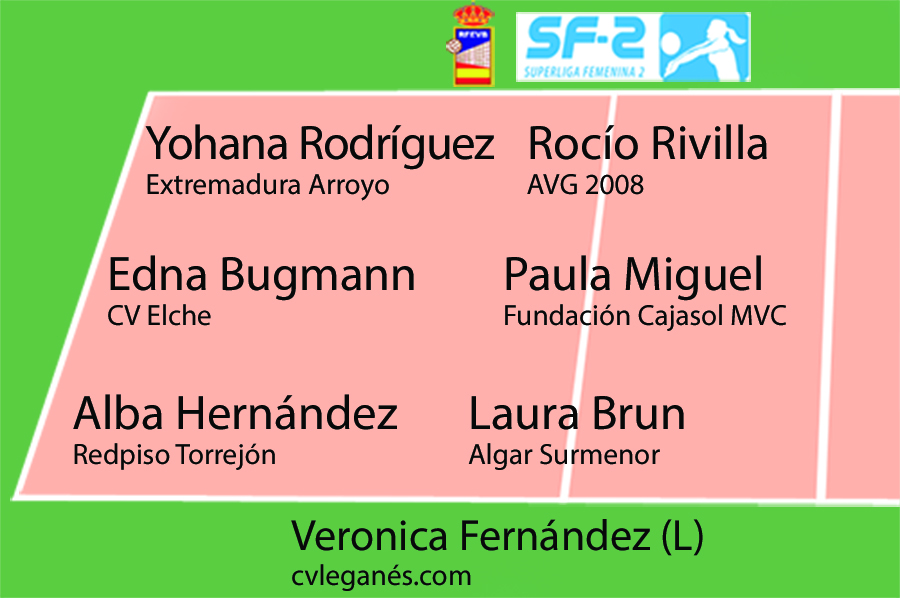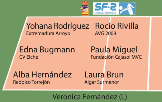 En tareas de dirección destacó Alba Hernández, de Redpiso Torrejón, que con sus 5 puntos, 1 ace y 35% de efectividad ofensiva colectiva llevó a su equipo al triunfo sobre Cuesta Piedra Santa Cruz. La líbero de cvleganés.com Verónica Fernández completa el siete ideal de la primera jornada de SF2.