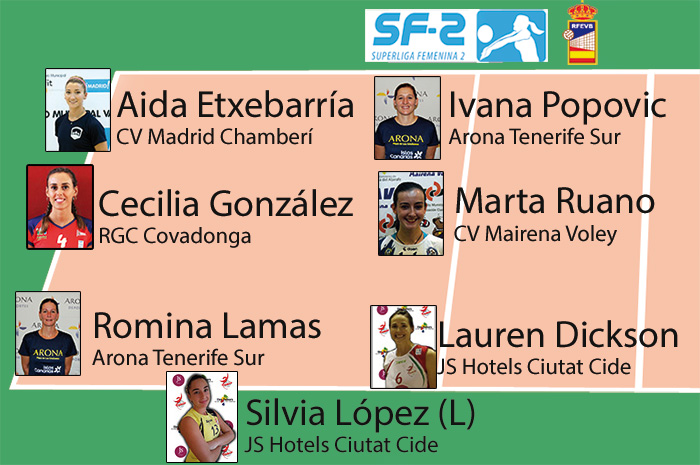 La jugadora de JS Hotels Ciutat Cide Lauren Dickson encabeza el siete ideal de la temporada de Superliga femenina 2. El curso de la división de plata del voley nacional terminó con Arona Tenerife Sur y JS Hotels Ciutat Cide como grandes vencedores al haberse hecho con los billetes para SFV, y con CV Madrid Chamberí y RGC Covadonga como otros de los animadores del campeonato. El siete ideal de la temporada queda de la siguiente forma.