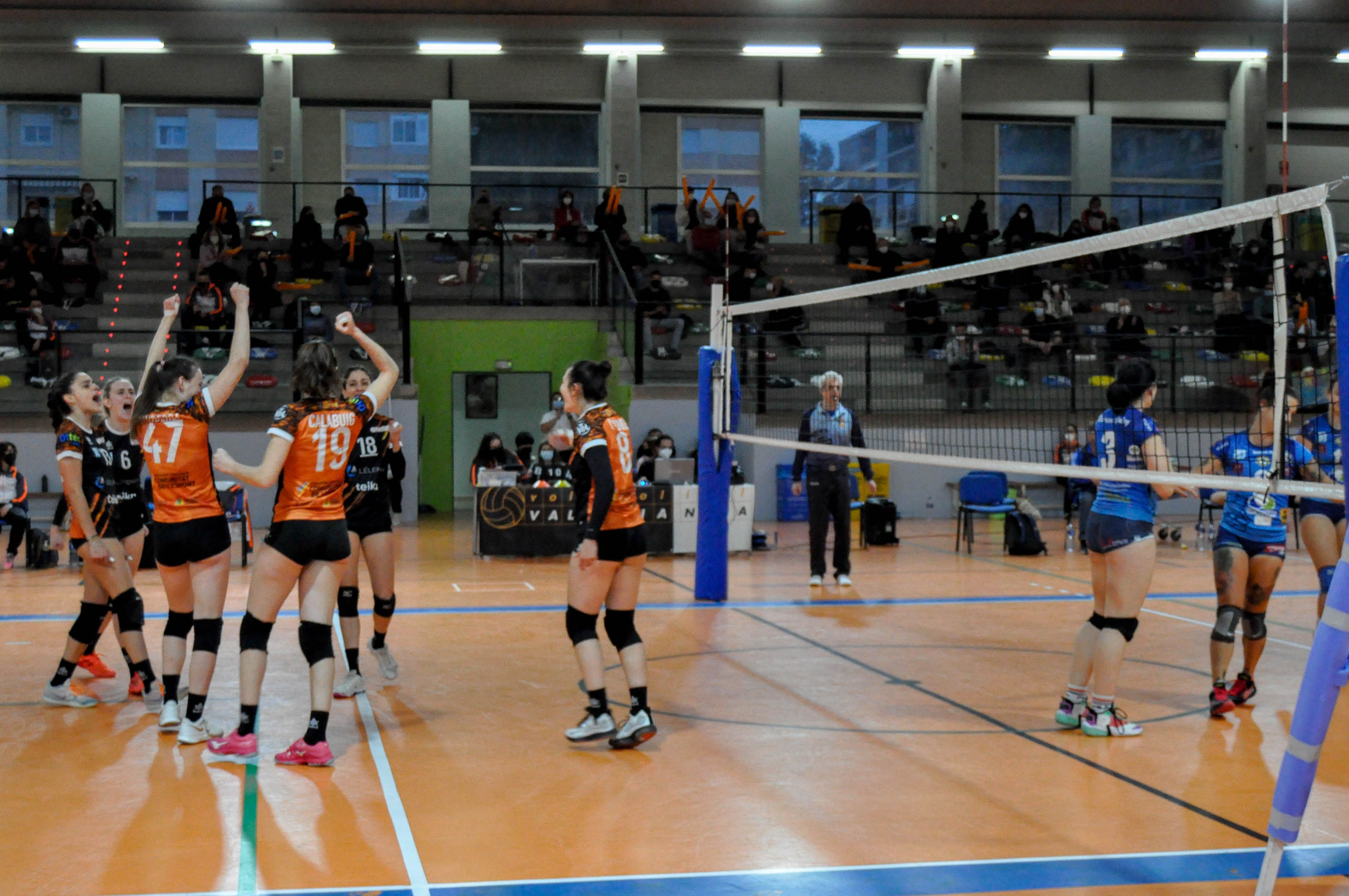El 2º set es de dominio total de las valencianas (5-1) y llegando hasta doblar en el marcador a su rival (16-8). 6 de ellos son bloqueos, con Patri Calabuig como estilete en el freno del ataque visitante. Cate Ponce encuentra sus mejores opciones a la hora de distribuir el ataque levantino. Aurora Ubé (17 puntos en todo el partido) es la máxima atacante de este parcial por parte local. Sabrina Ferrari desde la línea de saque y Cristina Rodríguez en la 1ª línea de ataque suman dígitos en nuestro marcador. El set acaba siendo valenciano por 25-18.