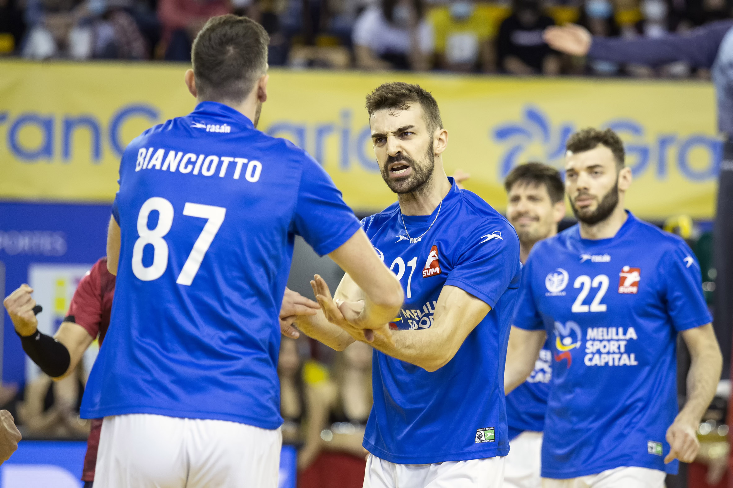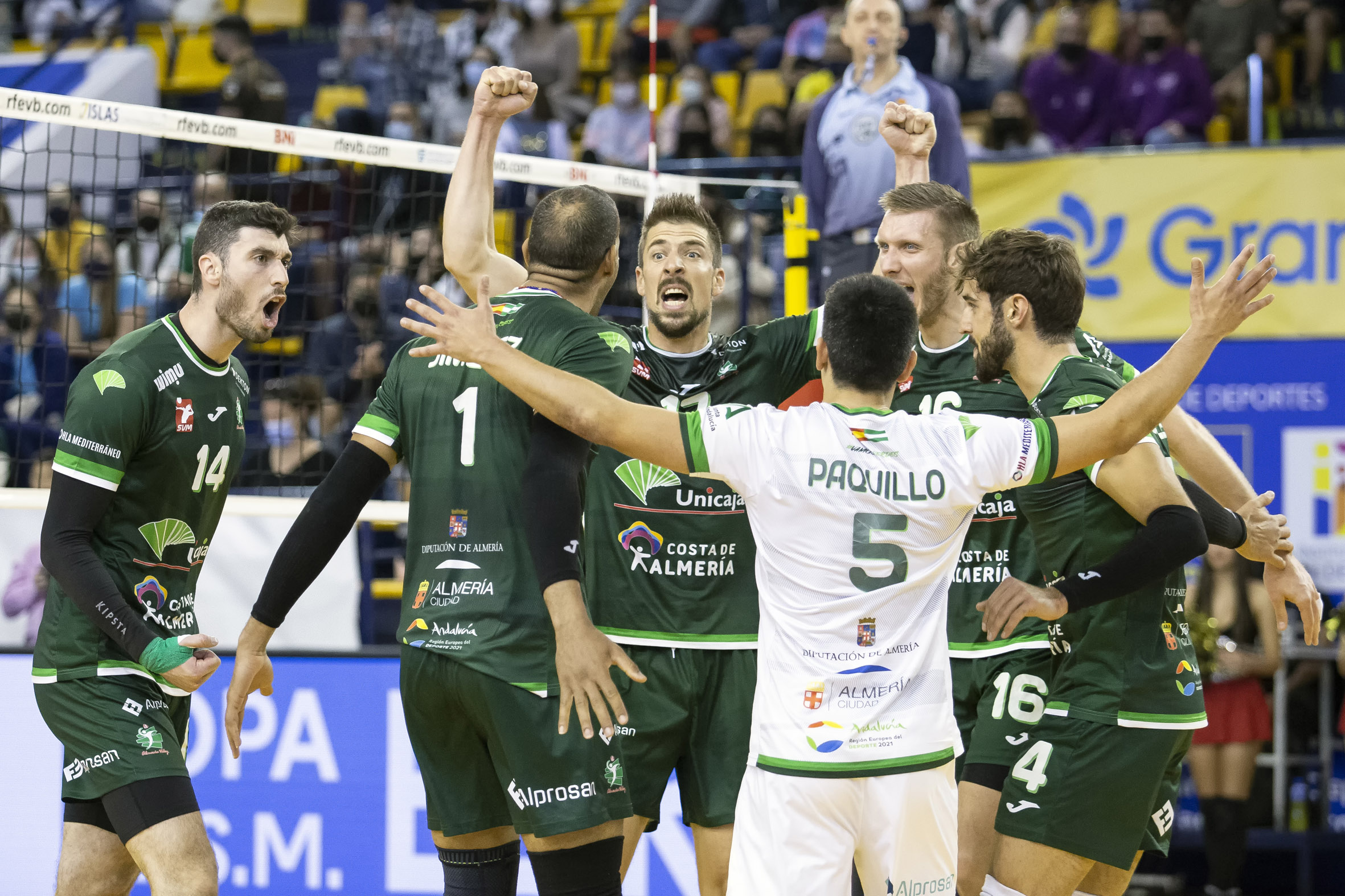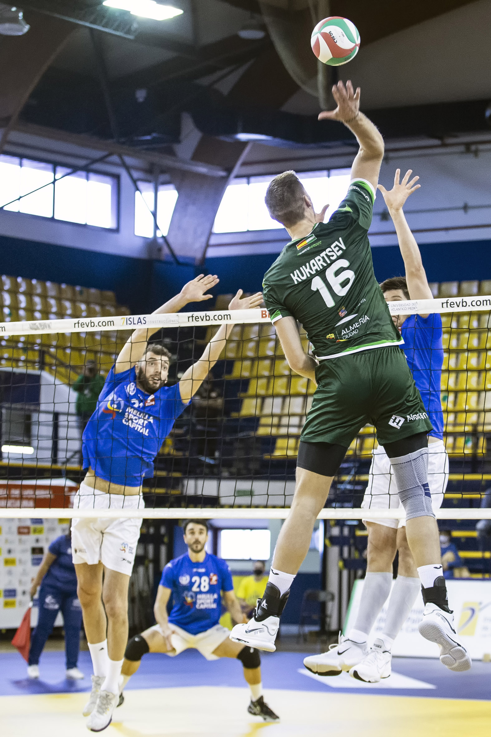Los dos primeros clasificados de la Superliga Masculina se citaban en el Centro Insular de Deportes por el título del KO en un choque que estuvo marcado desde el inicio por la intensidad entre los dos conjuntos más en forma de la competición. El intercambio de acciones discurría por la mayor de las igualdades, sin que ni Unicaja Costa de Almería ni Melilla Sport Capital consiguieran distanciarse en el marcador hasta la llegada al saque de Juanmi González que daría tres de renta a los ahorradores, rápidamente enjugados por el conjunto melillenses que aprovecharían la dinámica para conseguir ellos la ventaja y disponer de varios puntos de set concretados por un bloqueo de Giustiniano para el definitivo 25-22.