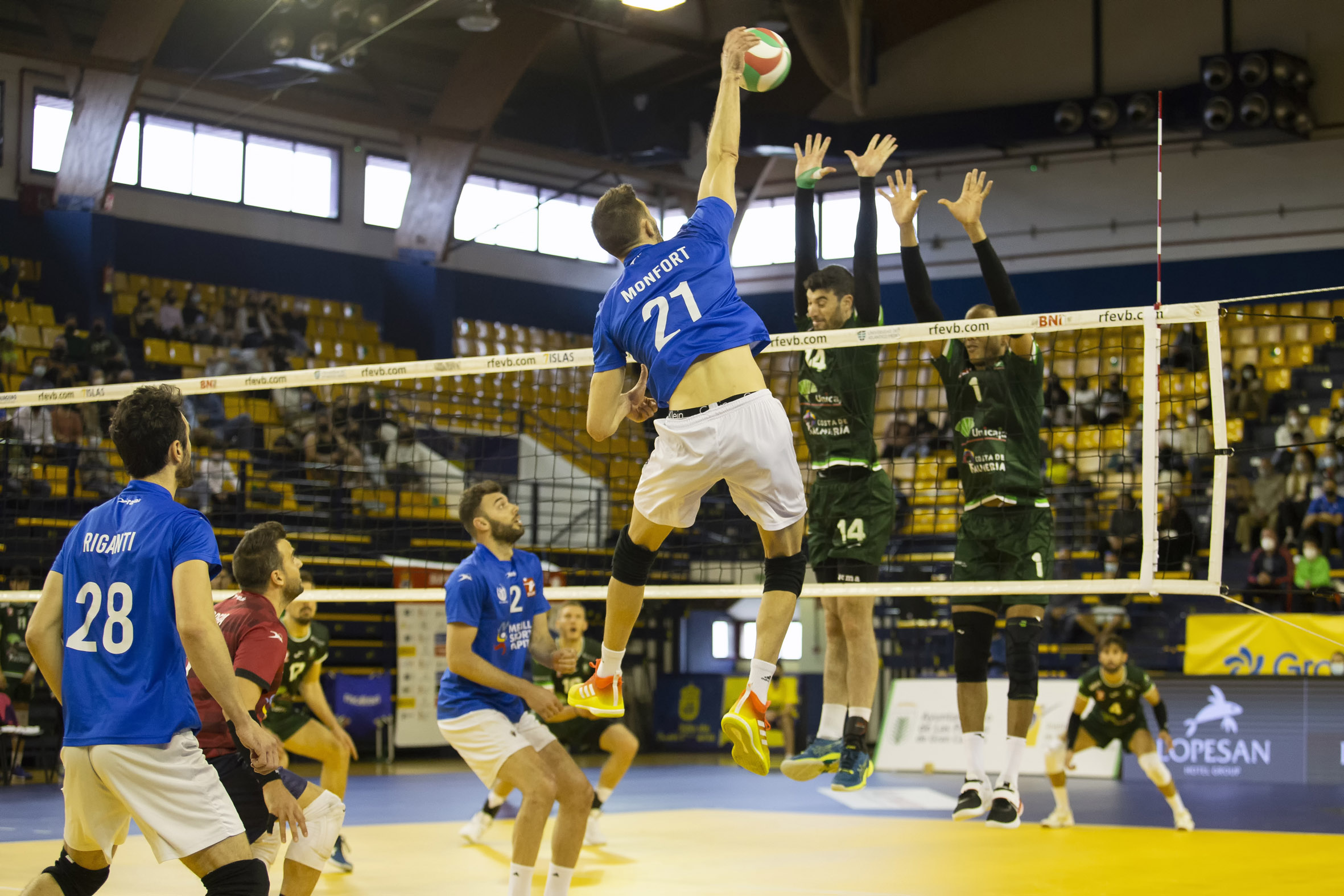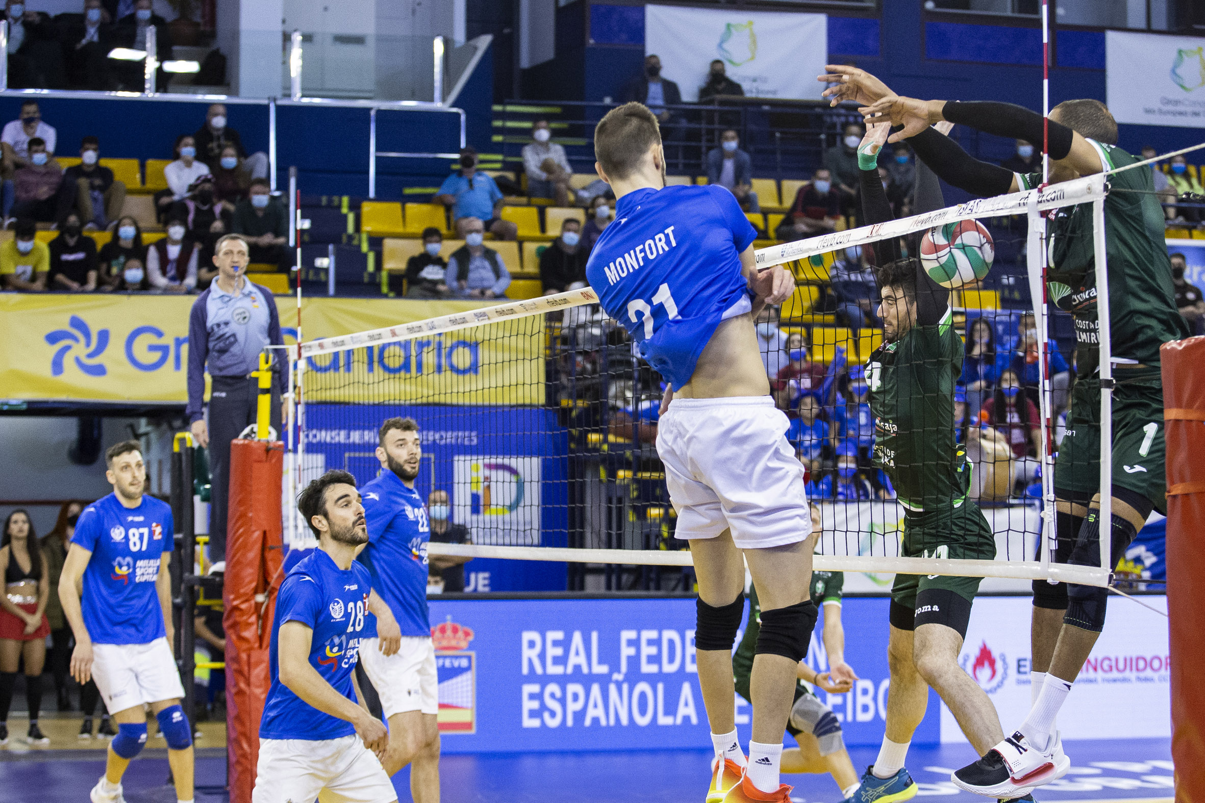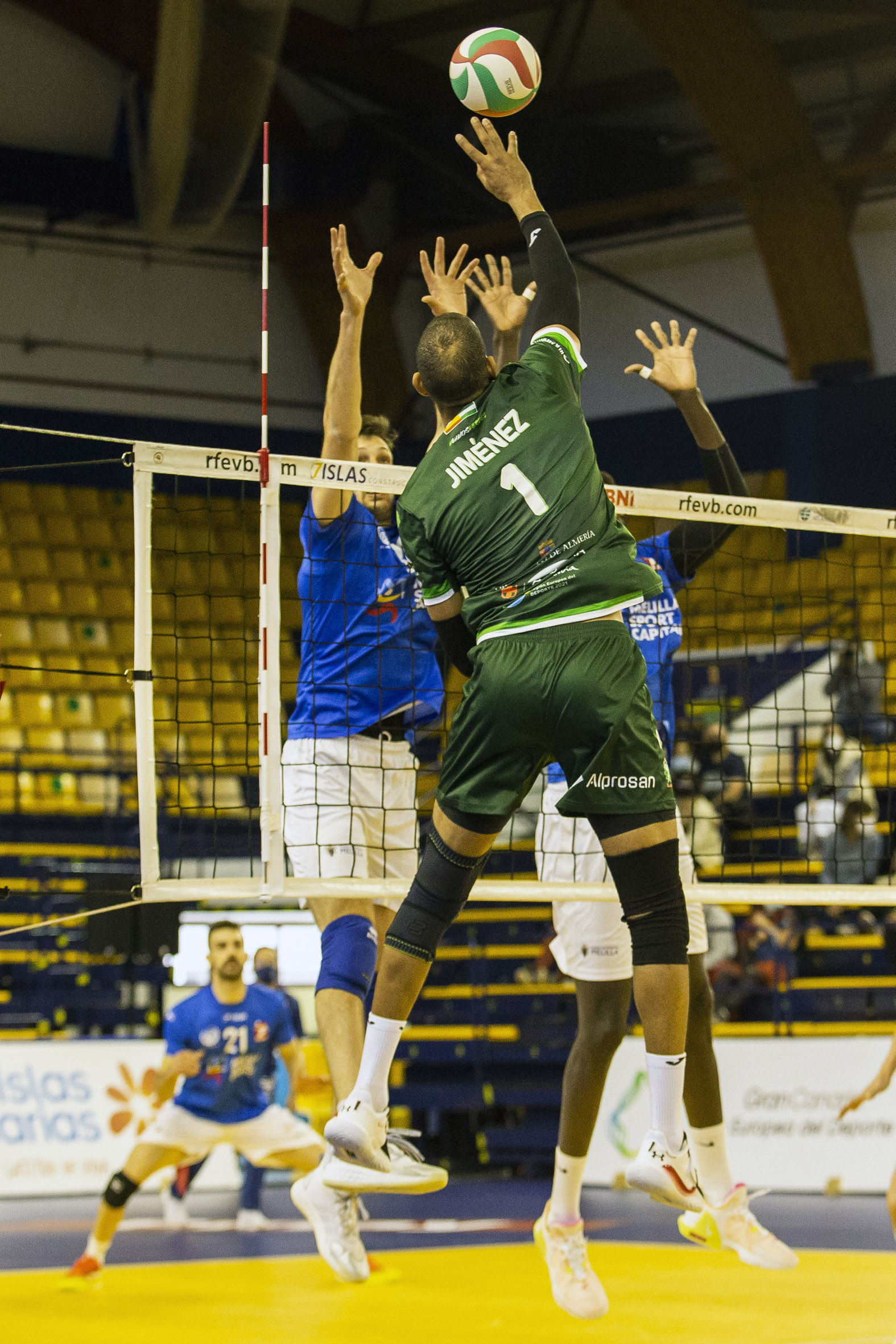 Los dos primeros clasificados de la Superliga Masculina se citaban en el Centro Insular de Deportes por el título del KO en un choque que estuvo marcado desde el inicio por la intensidad entre los dos conjuntos más en forma de la competición. El intercambio de acciones discurría por la mayor de las igualdades, sin que ni Unicaja Costa de Almería ni Melilla Sport Capital consiguieran distanciarse en el marcador hasta la llegada al saque de Juanmi González que daría tres de renta a los ahorradores, rápidamente enjugados por el conjunto melillenses que aprovecharían la dinámica para conseguir ellos la ventaja y disponer de varios puntos de set concretados por un bloqueo de Giustiniano para el definitivo 25-22.