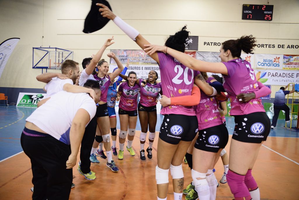 Minis de Arluy Voleibol Logroño venció 1-3 (25-21, 20-25, 19-25 y 18-25) a CV CCO 7 Palmas GC en un choque donde las riojanas fueron de menos a más en el partido. Las pupilas de Sergio Miguel Camarero demostraron su ambición con un gran primer set en el que Saray Manzano y Sara Folgueira doblegaron al conjunto riojano. Carlos Arratia cambió su rotación, dando entrada a Amelia Portero para apuntalar la recepción, y Nicole Edelman distribuyó juego con más facilidad. Daniella Da Silva en remate y una sensacional lectura en bloqueo catapultó al vigente campeón liguero que desde el segundo parcial no permitió a las grancanarias inquietar el triunfo visitante que daba el pase a la final a Minis de Arluy VB Logroño.