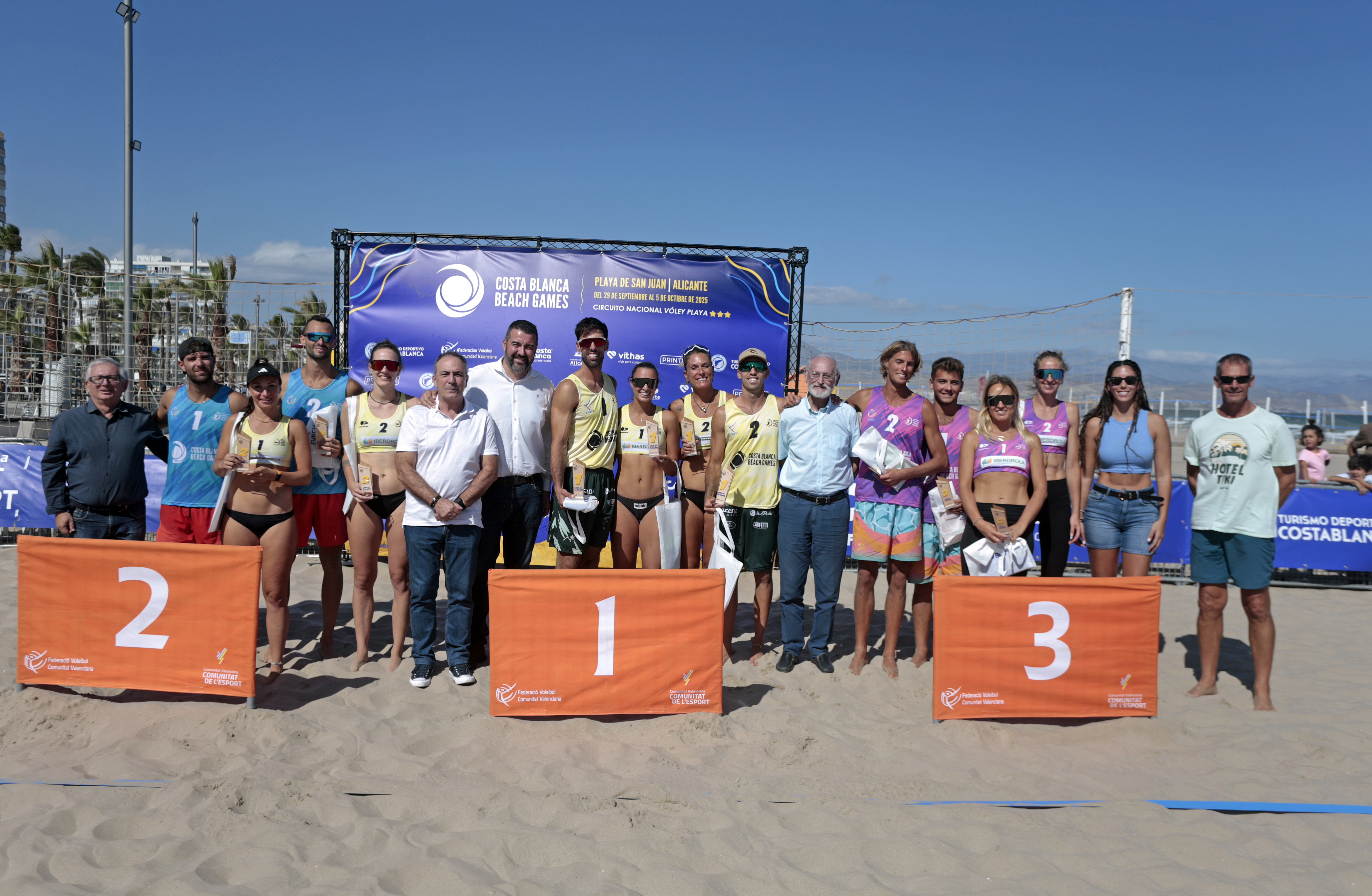 Los Costa Blanca Beach Games han puesto este domingo el broche final con partidos de muy alto nivel en la Playa de San Juan dentro de la prueba tres estrellas del Circuito Nacional de Vóley Playa.