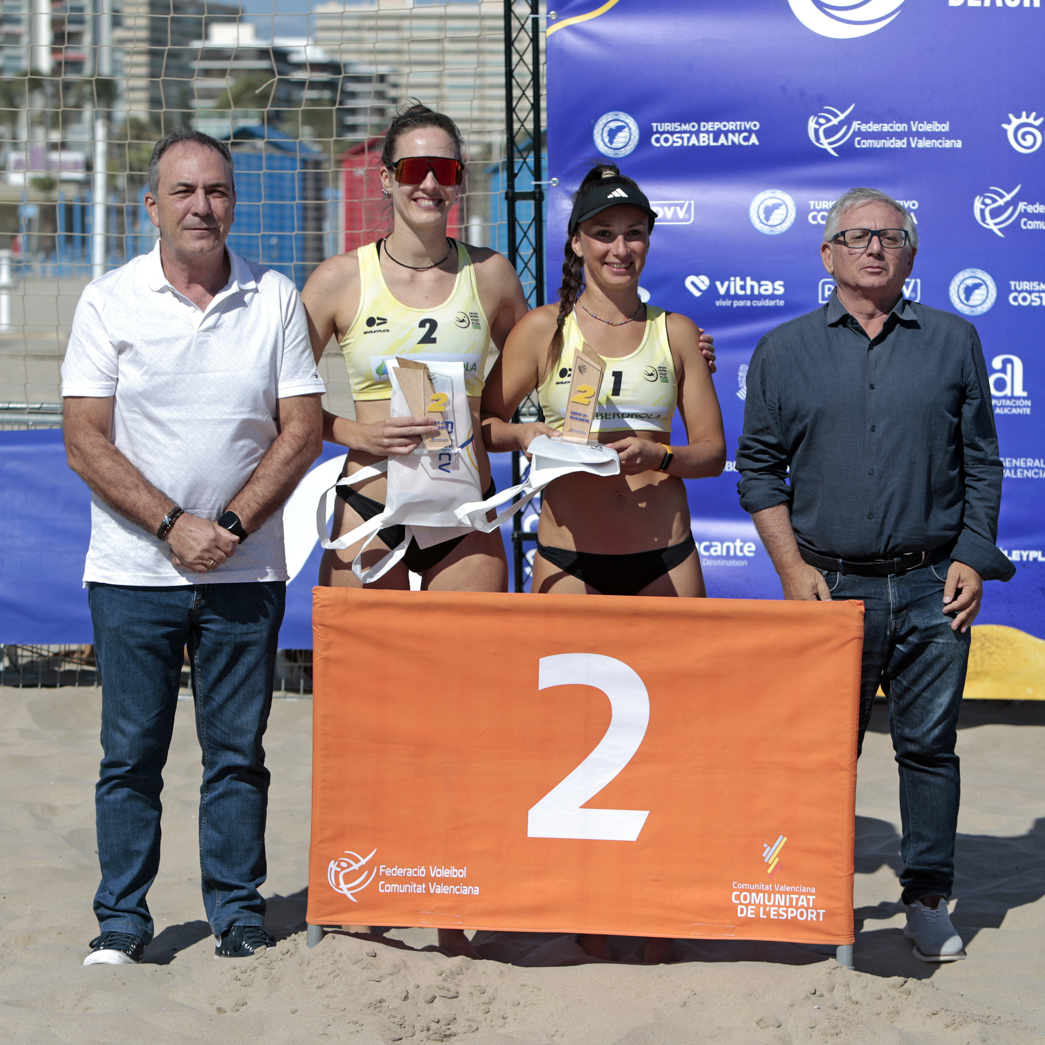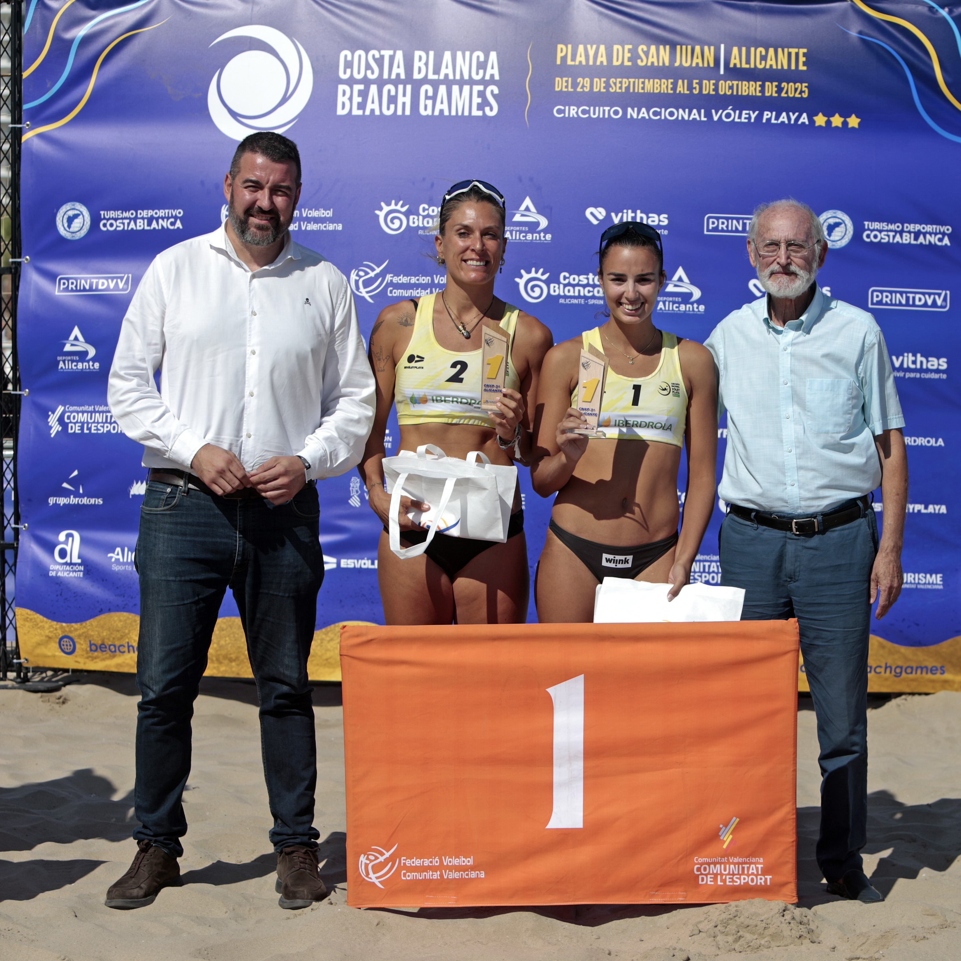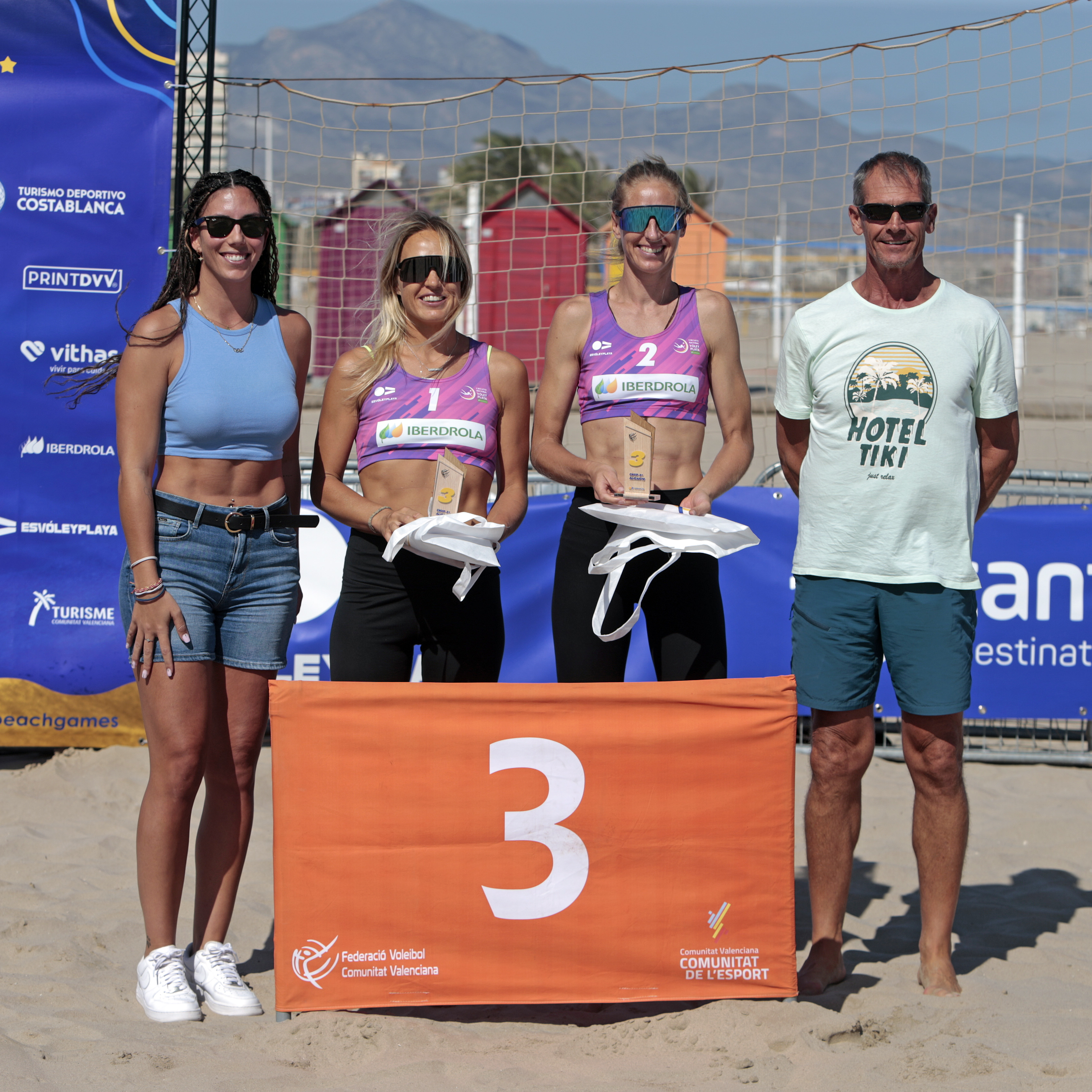 En la competición femenina, Nazaret Florián y Ana Vergara se colgaron el oro al mostrar un juego muy sólido y sin fisuras en la final (2-0) ante la polaca Aga Adamek y la rusa Elena Svidorova, dominadoras del circuito valenciano. El estadio de 300 espectadores se quedó pequeño para disfrutar de esta jornada final del domingo que puso el broche de oro a los Costa Blanca Beach Games. Por último, el bronce femenino cayó claramente del lado de las veteranas Kadri Puri y Erika Kliokamanaite, que no dieron opción (2-0) a Elba Paez y Daniela Andreu.