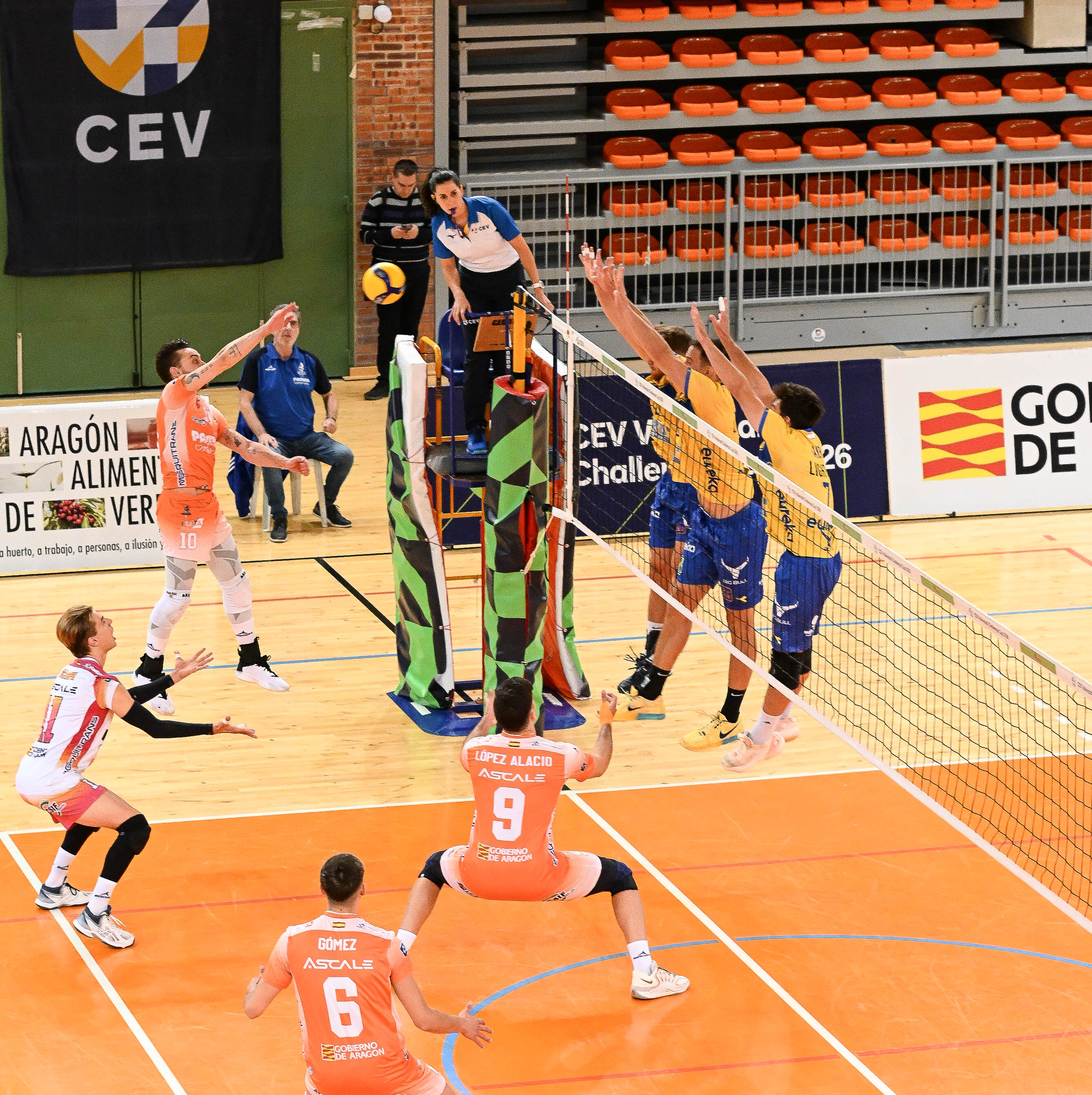 Pero el impulso de los de Teruel ya era imparable. Un buen parcial, culminado con un gran bloqueo de David López, les permitió empatar a 20. Se venía un final de infarto, en el que los puntos se sucedían por ambos equipos al igual que los empates, hasta que finalmente el Pamesa Teruel culminó la remontada y se llevó el set por 28-26.
