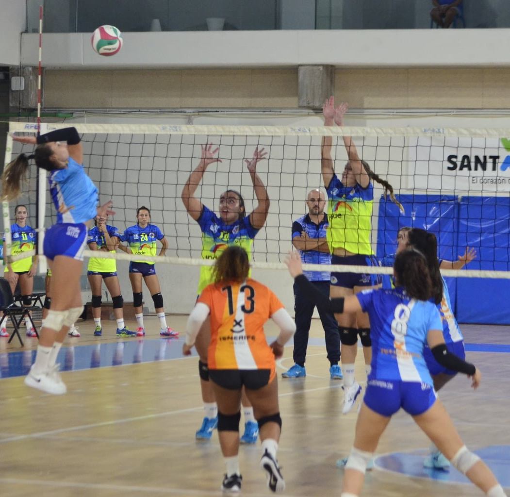 En el conjunto chicharrero destacó la muy buena actuación de María Pérez, quien fue la máxima anotadora del partido con un total de 14 puntos, seguida de Marta Ruano con 13 puntos, destacar también a la central Elena Santana quién con sus bloqueos y ataques logró un total de 9 puntos. El equipo visitante, a pesar de la buena actuación de la ya nombrada Ana Martínez y María Soldevila quienes con sus 9 puntos cada una no pudieron mas que ver como se les escapaba el tercer set por un 25-22.