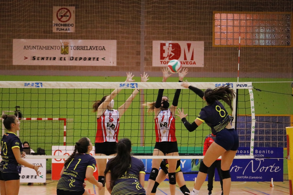 El equipo torrelaveguense comenzó perdiendo el primer set debido en parte a errores propios no forzados, lo que fue aprovechado por el equipo madrileño para ponerse por delante en el marcador. Pero en el segundo parcial cambió el tono y las de Rubén Piquet, más centradas, lograban distanciarse gracias en buena parte a la mejoría en el saque y el acierto en el remate, con una buena distribución de juego de Dacuiña y la efectividad de Segovia, Neila y Aroa, todas ellas veteranas y que no vacilaron en echarse a las espaldas el peso del partido, bien secundadas por las juveniles Cubero y Vallines.