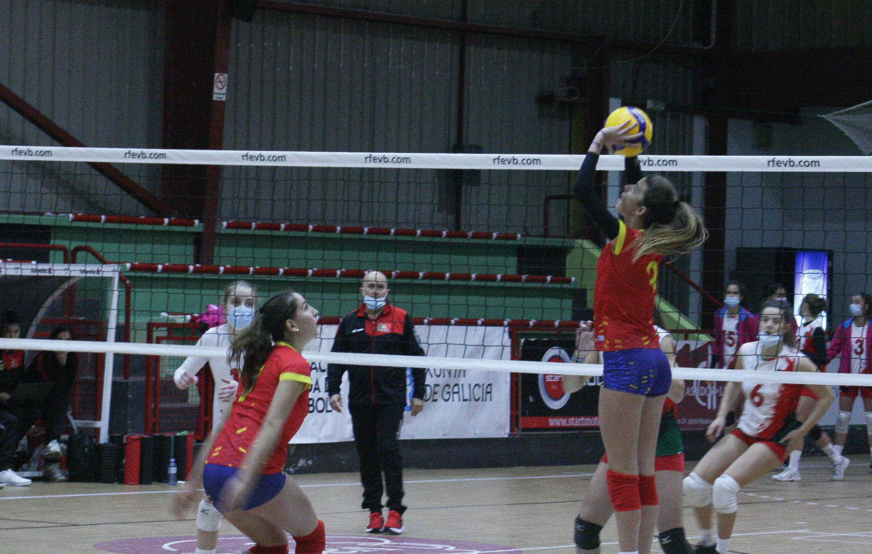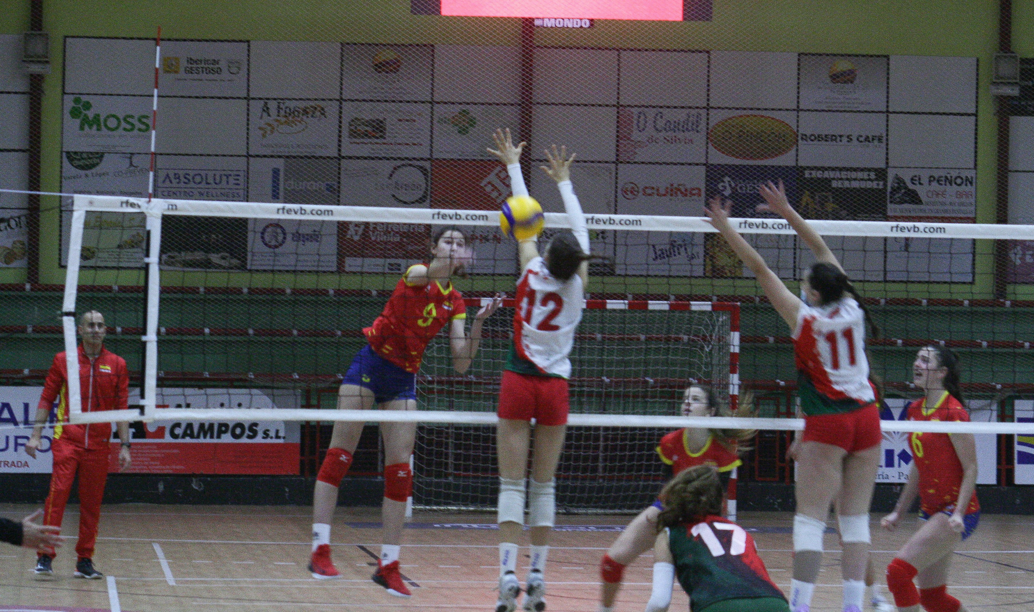 En el primer parcial, el saque contundente de Portugal les permitió avanzar en el electrónico hasta colocarse 1-5. Dos tiempos muertos después, ambos solicitados por parte de Juan Carlos Suarez, seleccionador español, permitieron a las locales volver al partido y acortar distancias, ganando confianza y precisión en recepción.