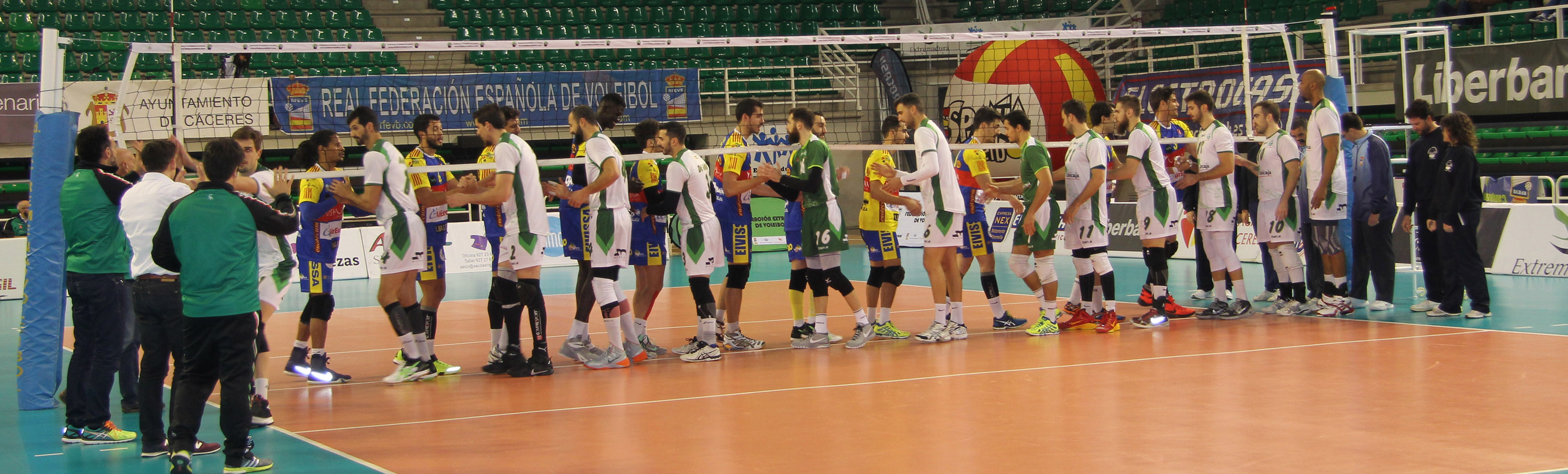 Unicaja Almería - Ushuaïa Ibiza Vóley Los dos equipos se saludan antes del inicio del encuentro